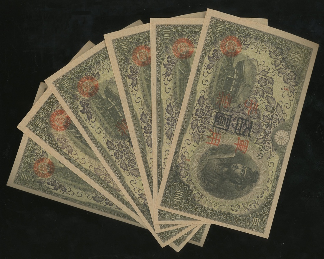 Japanese Invasion Money, group of 6x 100 yen, almost uncirculated to uncirculated (6)