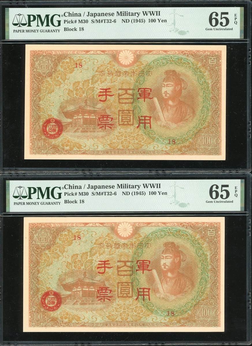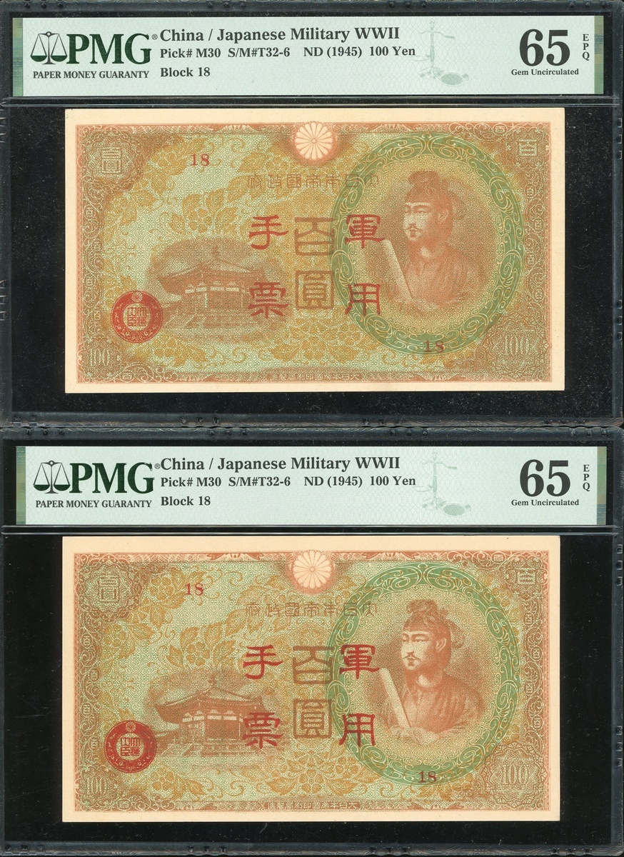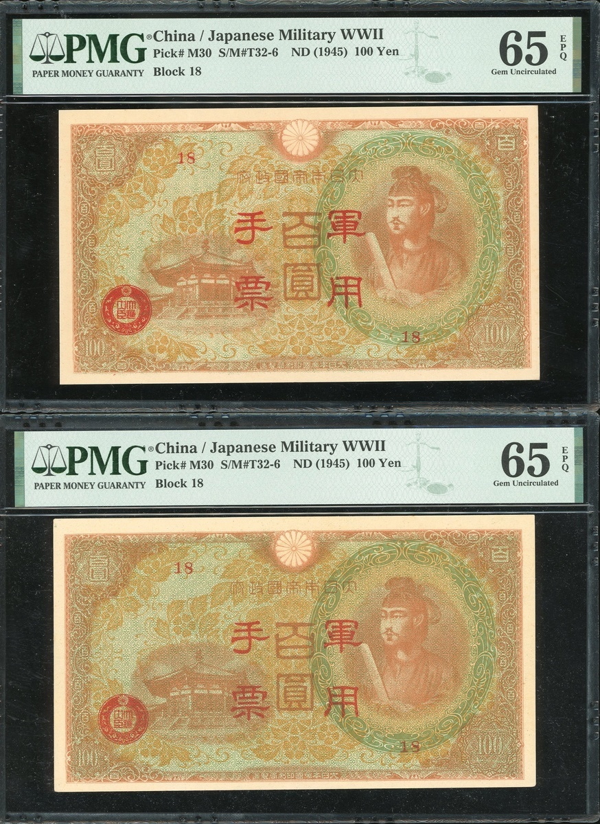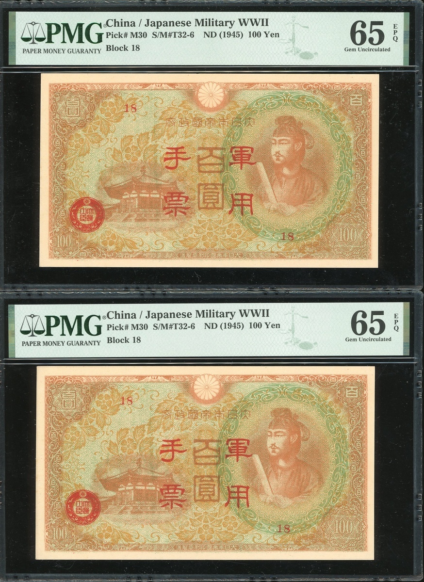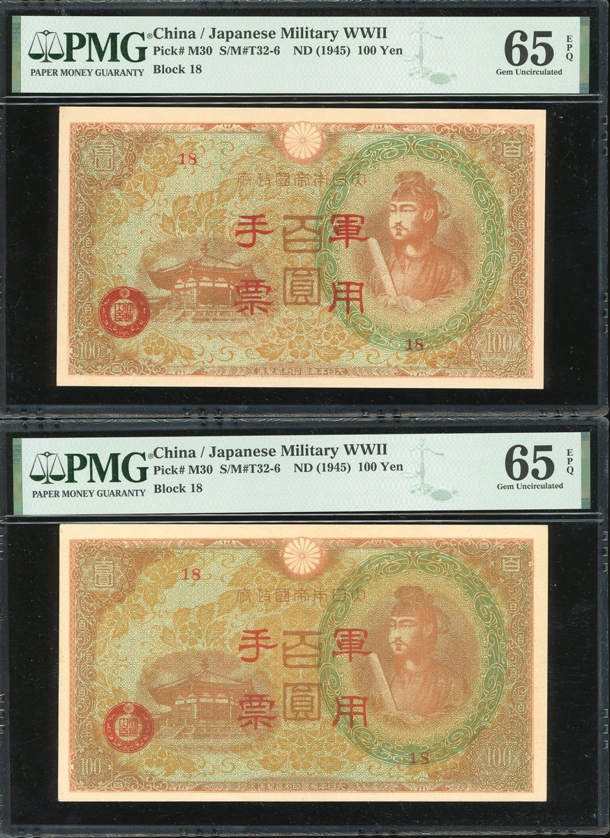China / Japanese Military WWII, (Pick M30), all graded PMG 65EPQ Gem Uncirculated (10)