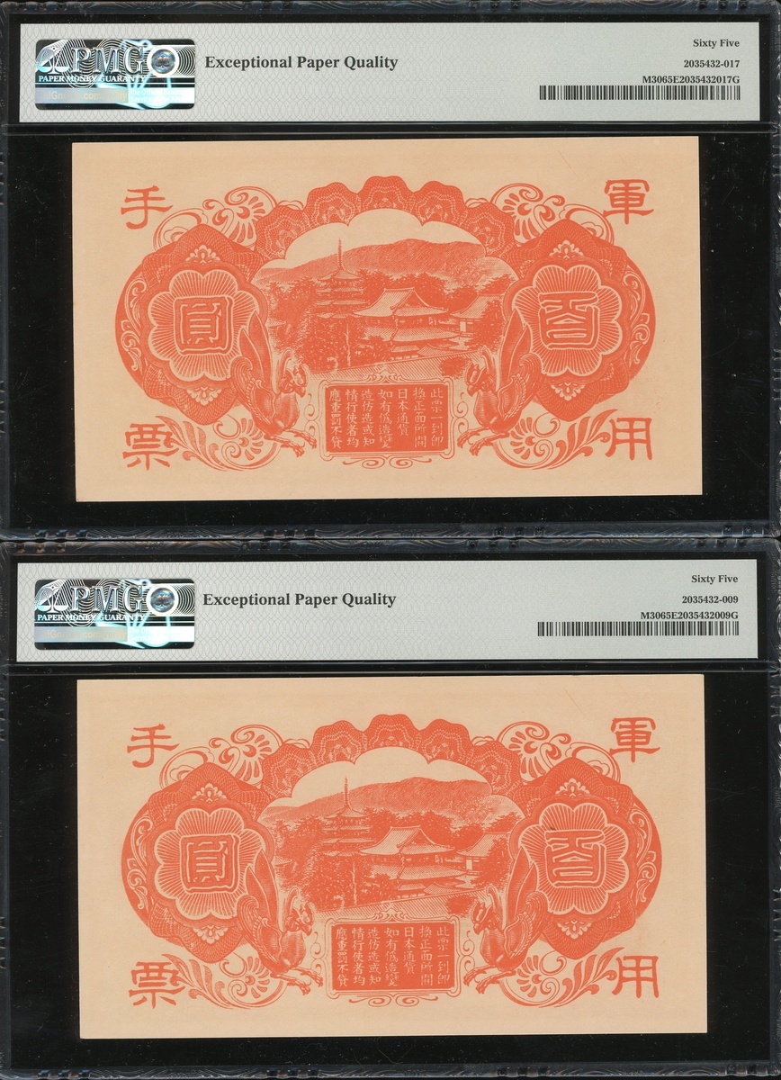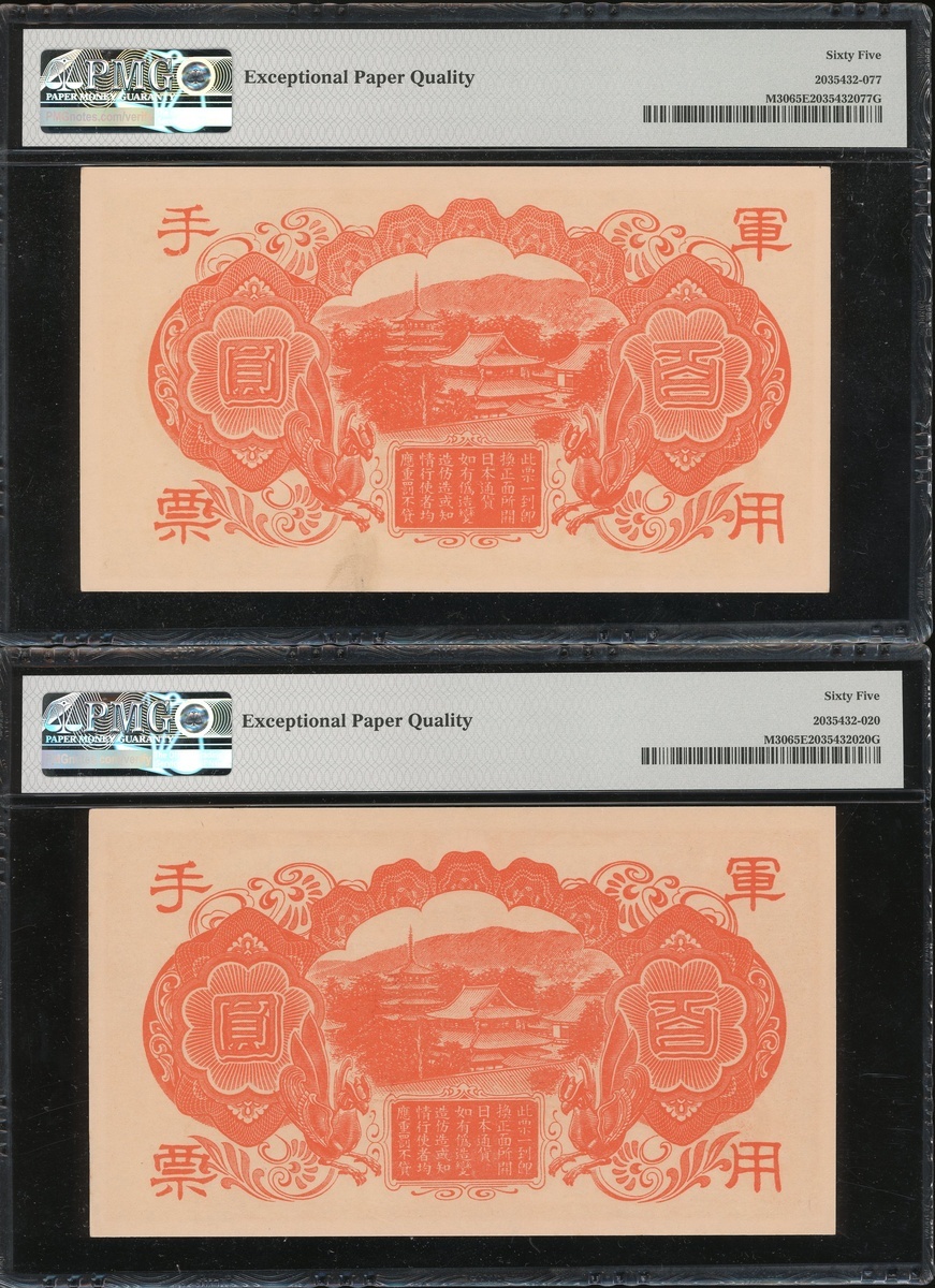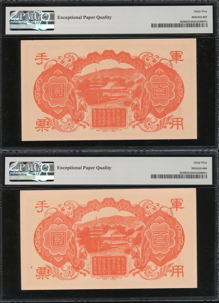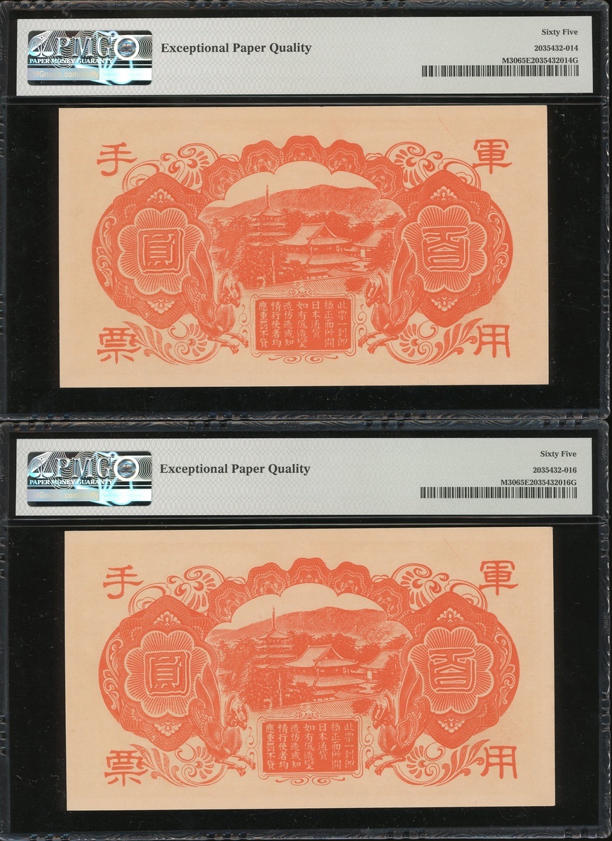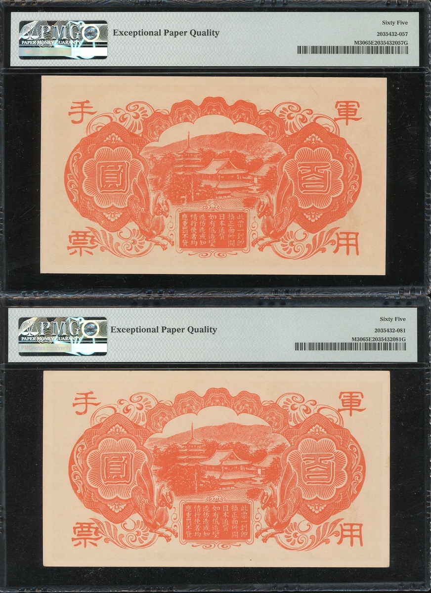 昭和二十年大日本帝國政府軍用手票壹佰圓一組十枚,均PMG 65EPQ