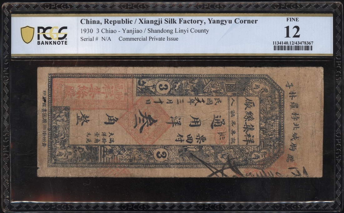Private Issue, Shandong Xiangji Silk Factory, (Pick unlisted), PCGS Banknote 20, 25(Foreign Substance) and 12(Small Internal Split) respectively (3)