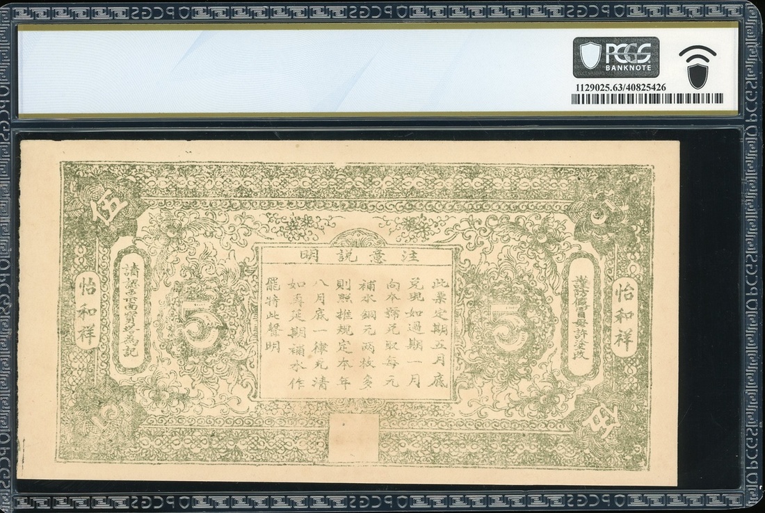 民國二十一年(1932)怡和祥茶號伍圓,庫存票,PCGS Banknote 63