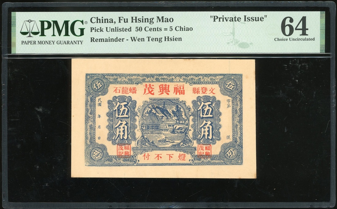 Private Issue, Fu Hsing Mao, 50 cents, ND, Wen Teng Hsien, remainder, (Pick unlisted), PMG 64 Choice Uncirculated