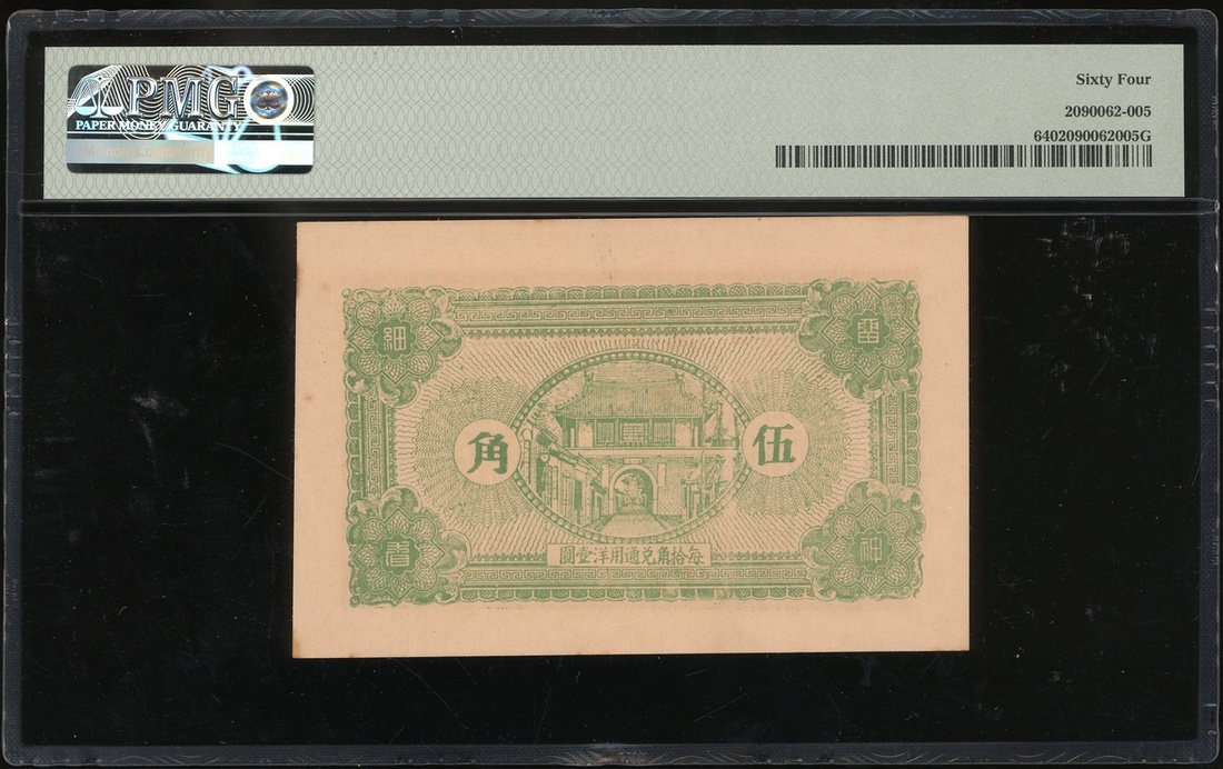 民國私鈔福興茂伍角,文登縣,庫存票,PMG 64