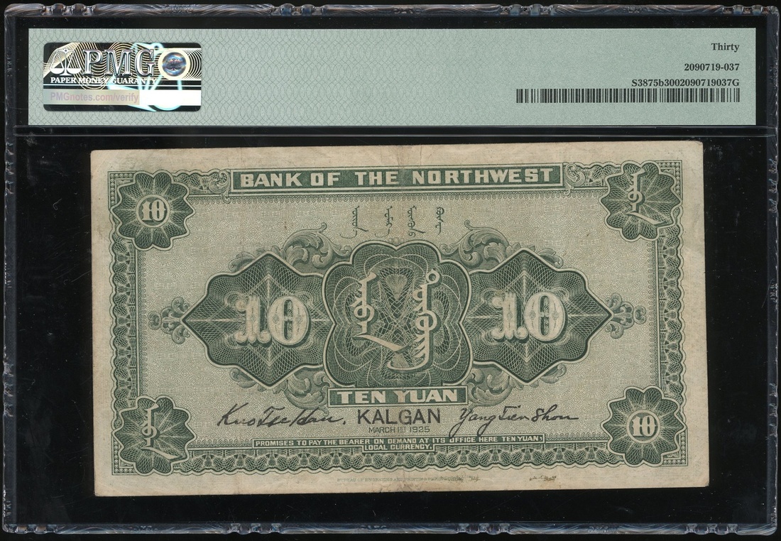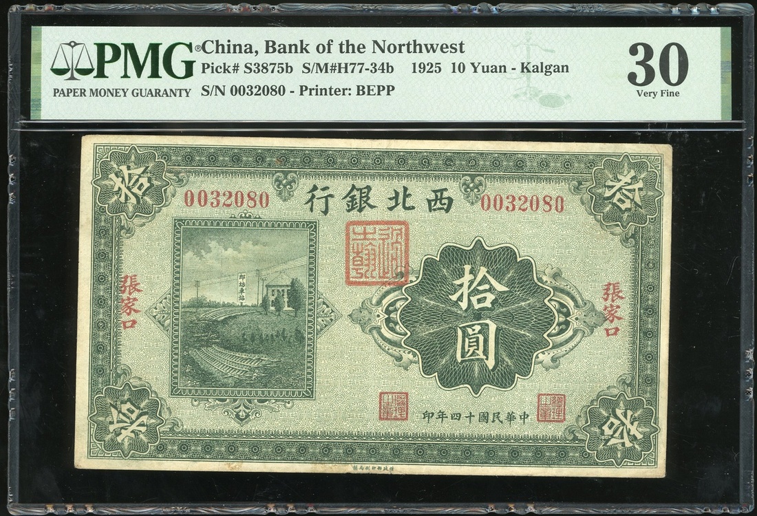 Bank of Northwest, 10 yuan, Kalgan, Year 14(1925), serial number 0032080, (Pick S3875b), PMG 30 Very Fine.