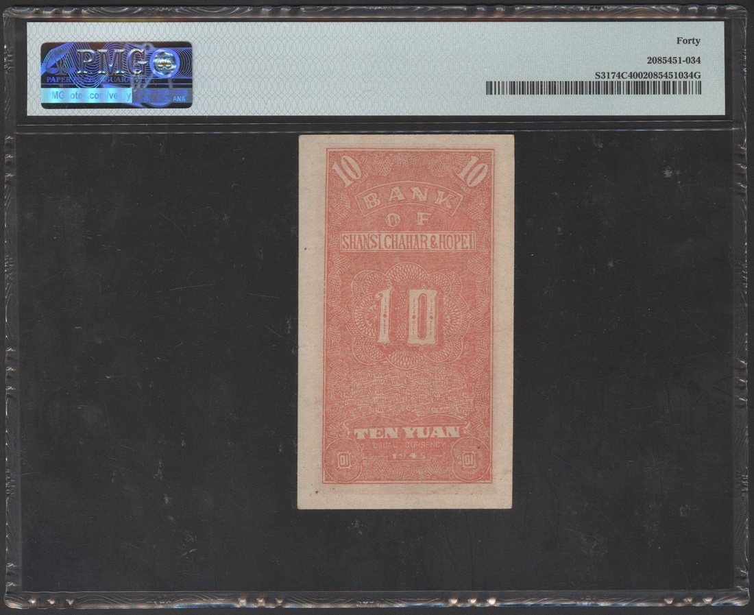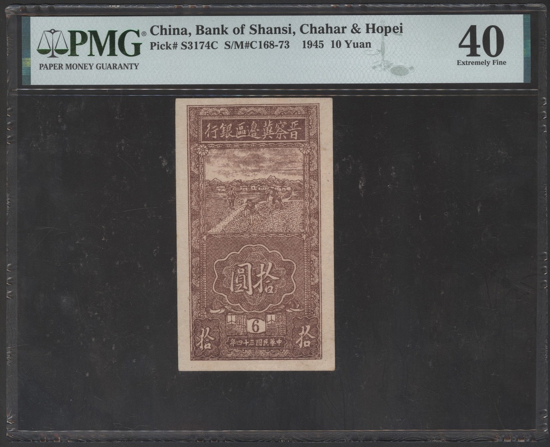 Bank of Shansi, Chahar and Hopei, 10 yuan, 1945, block serial number 6, (Pick S3174C), PMG 40 Extremely Fine