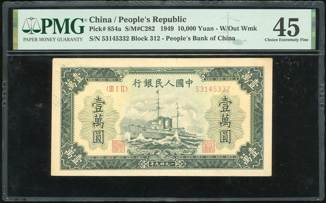 1949年中國人民銀行第一版人民幣10000元「軍艦」,編號III I II 01459703,PMG 45