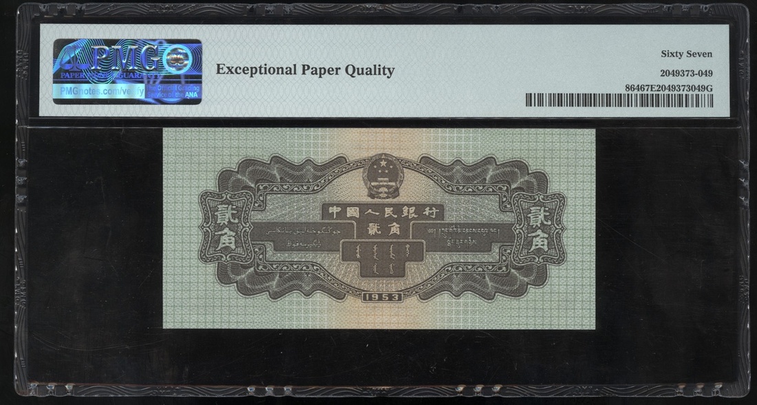 1953年中國人民銀行第二版人民幣2角,編號VII IX I 0106049,星水印,PMG 67EPQ