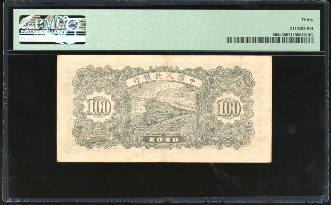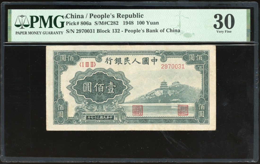 1948年中國人民銀行第一版人民幣壹百圓「萬壽山」,編號I III II 2970031,PMG 30