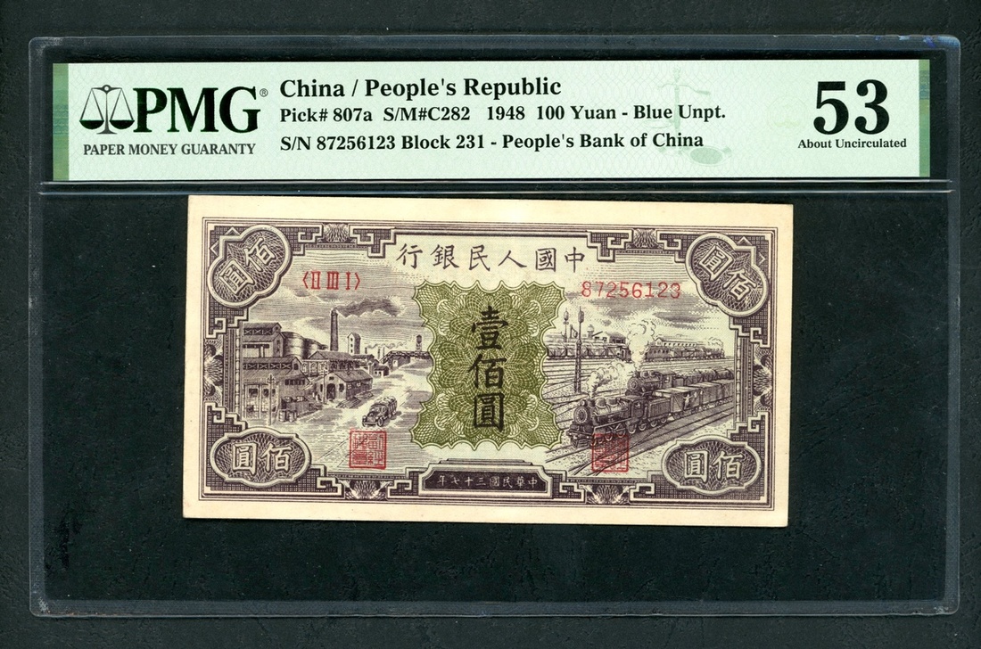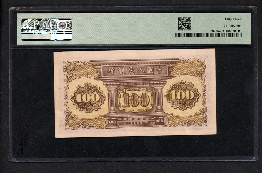 1948年中國人民銀行第一版人民幣壹百圓「黑工廠」,編號II III I 87256123,PMG 53
