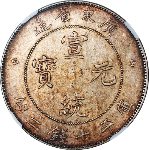 廣東省造宣統元寶庫平七錢二分,NGC AU Details,有清洗,#6377532-001