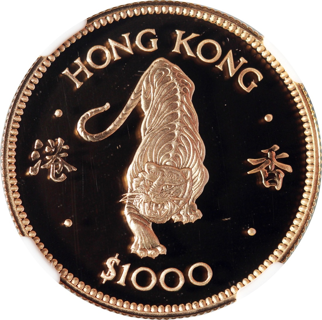 Hong Kong, gold $1000, 1986, "Year of the Tiger", NGC PF 68 Ultra Cameo, with original box and original booklet of issue, #6473456-014.