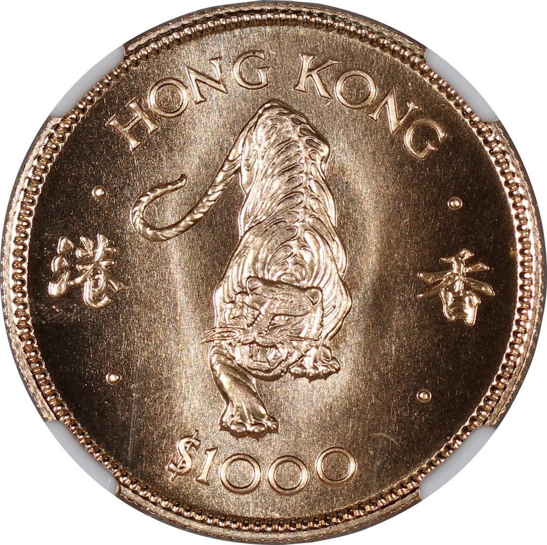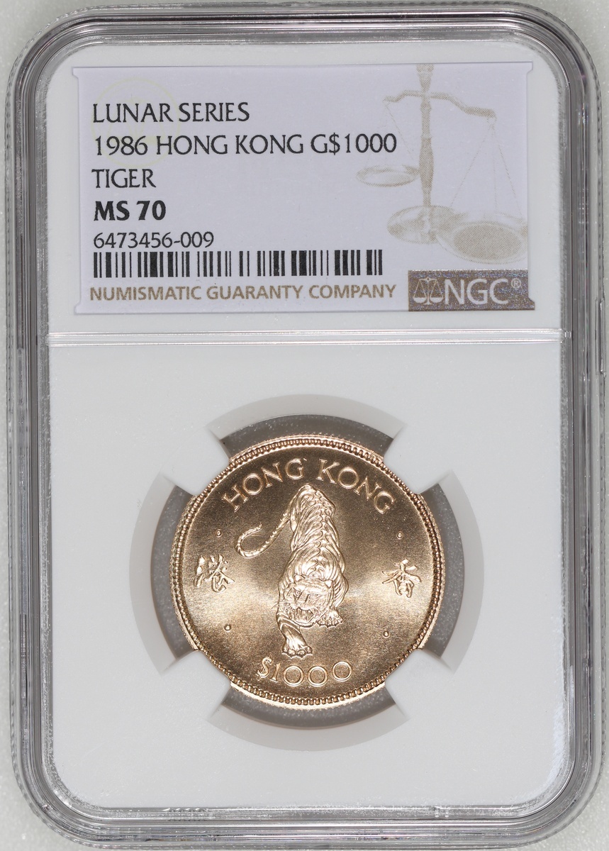 Hong Kong, gold $1000, 1986, Year of the Tiger, NGC MS70, cert. #6473456-009