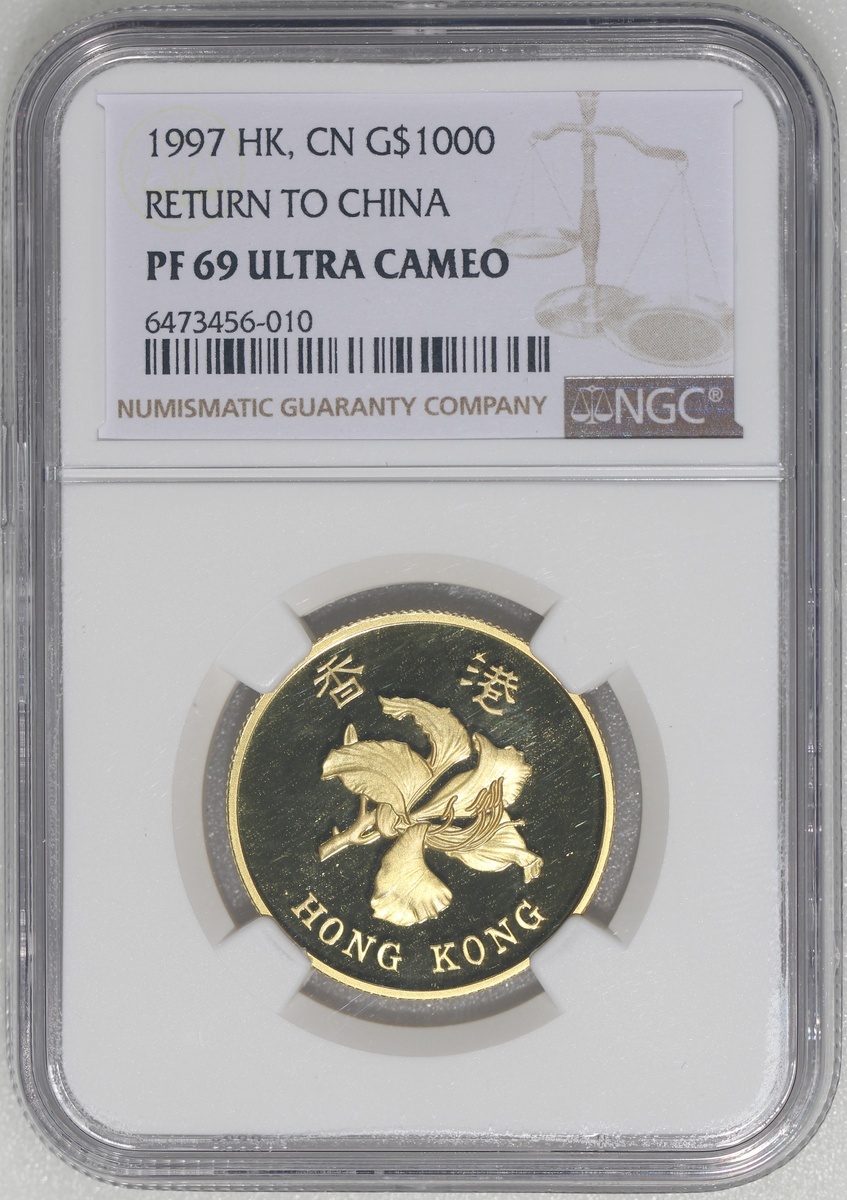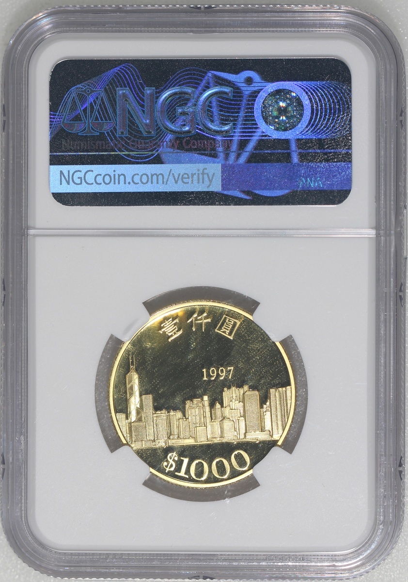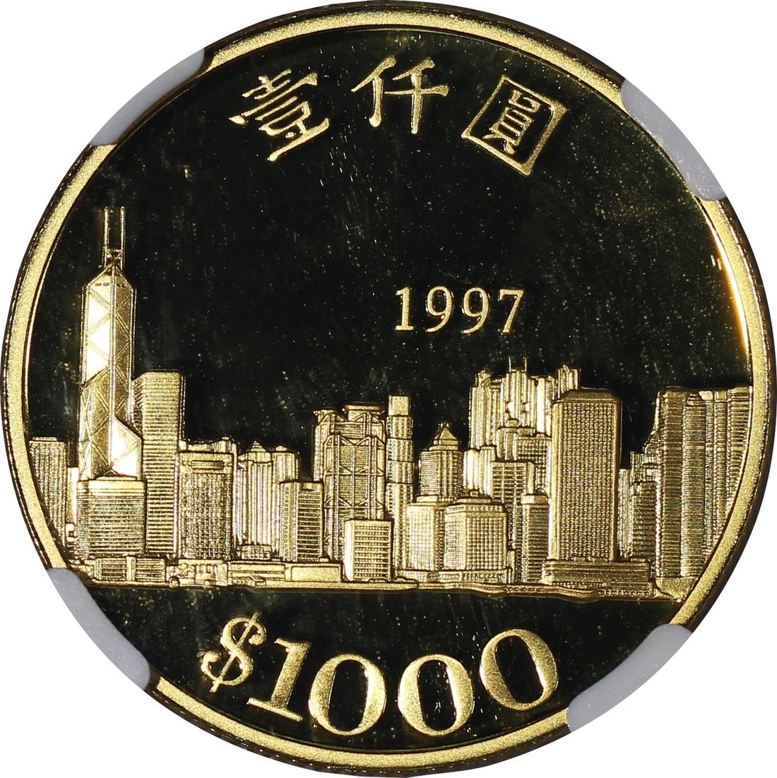 1997年香港回歸$1000精鑄紀念金幣,加拿大鑄,NGC PF69 Ultra Cameo,#6473456-010,連盒及證書,限量發行97,000枚