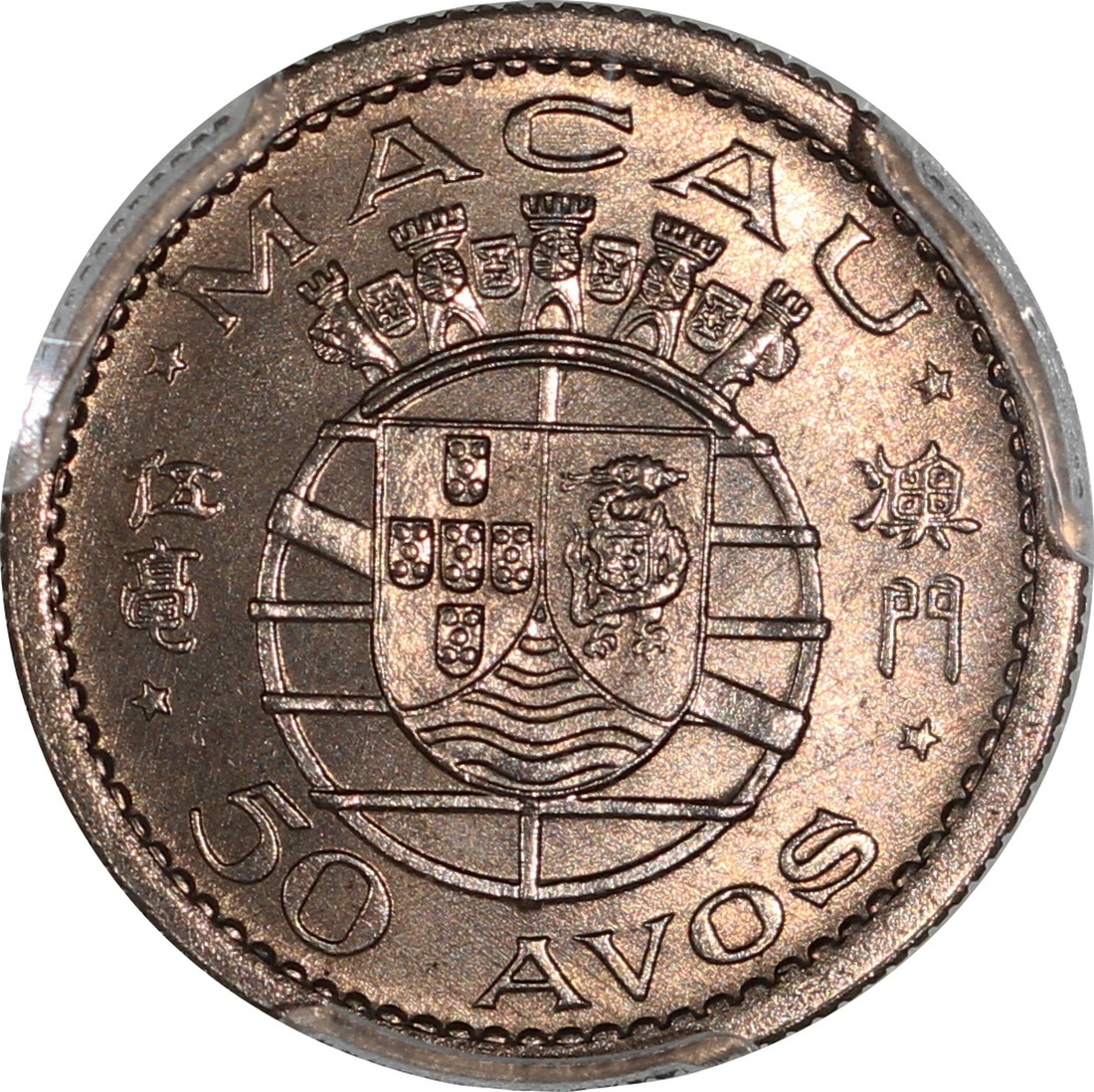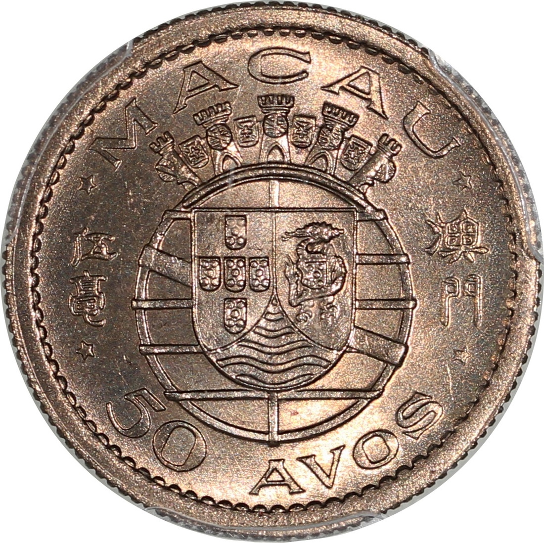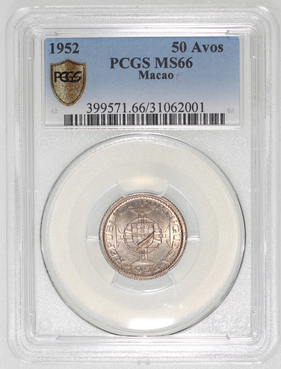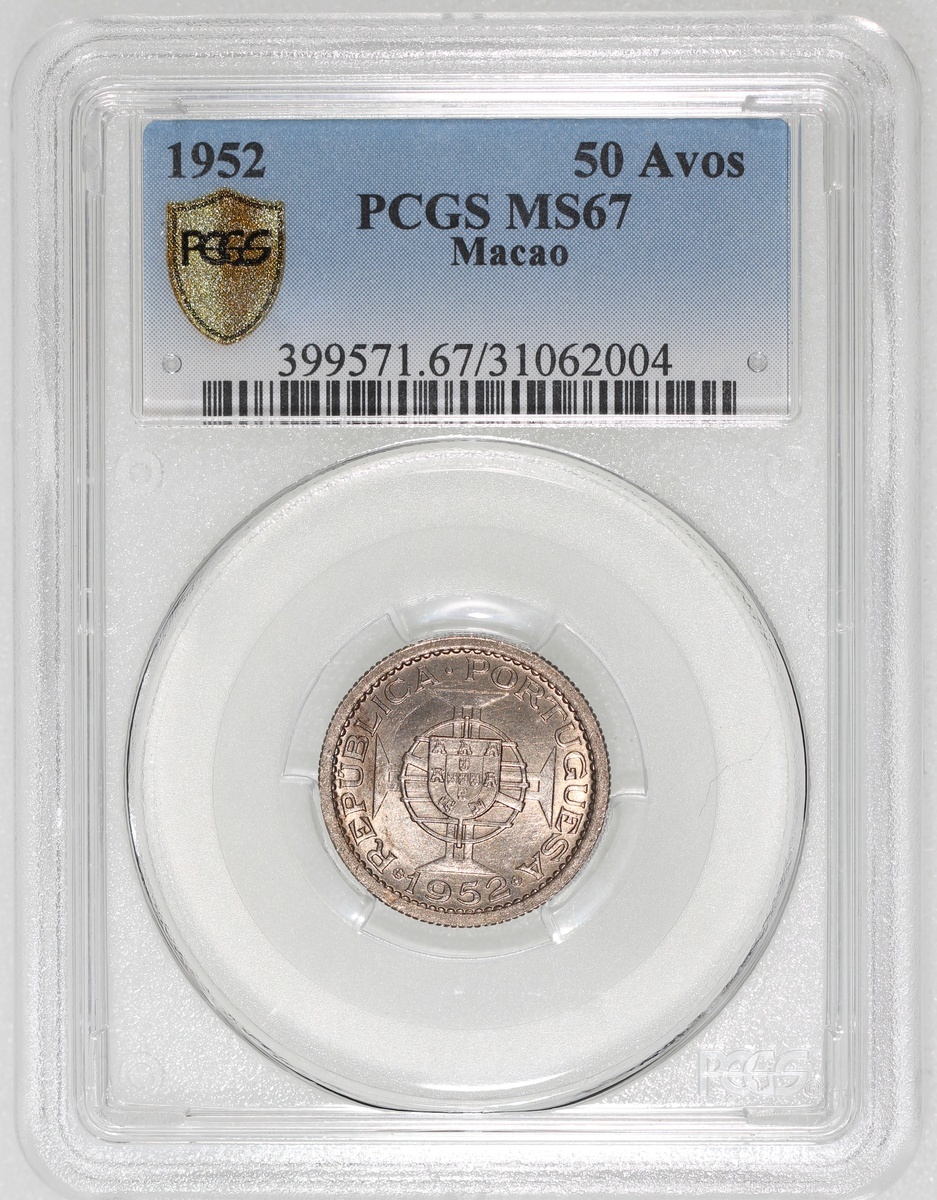 Macau, a pair of 50 avos, 1952, graded PCGS MS66 and MS67 respectively, #31062001 and #31062004 (2).