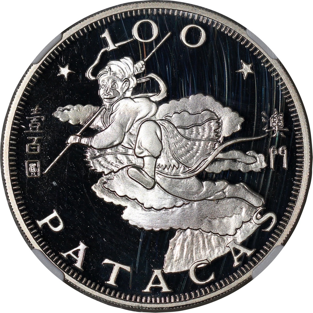 Macau, silver 100 patacas, 1980, Lunar series, Year of Monkey, NGC PF 68 Ultra Cameo, rare. Cert.#2874501-009