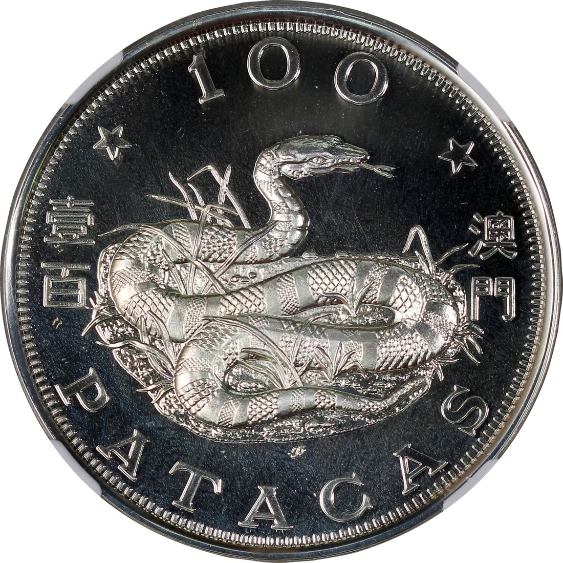 Macau, silver 100 patacas, 1989, Lunar series, Year of Snake, NGC PF 68 Ultra Cameo. Cert.#2874501-015