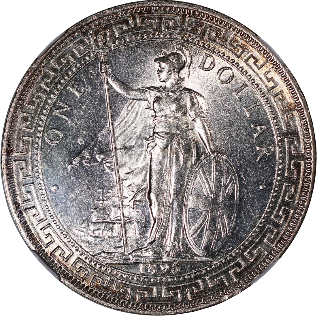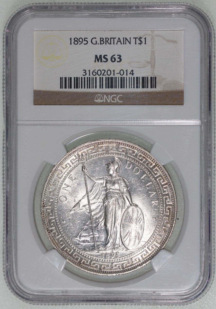 1895年英國貿易銀元,帶原光,邊沿帶柔和包漿,NGC MS63,#3160201-014,早期發行之重要年份