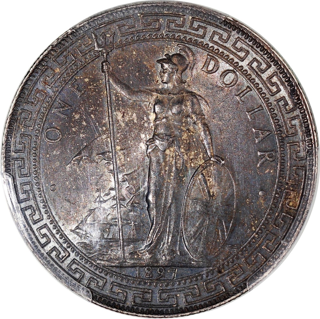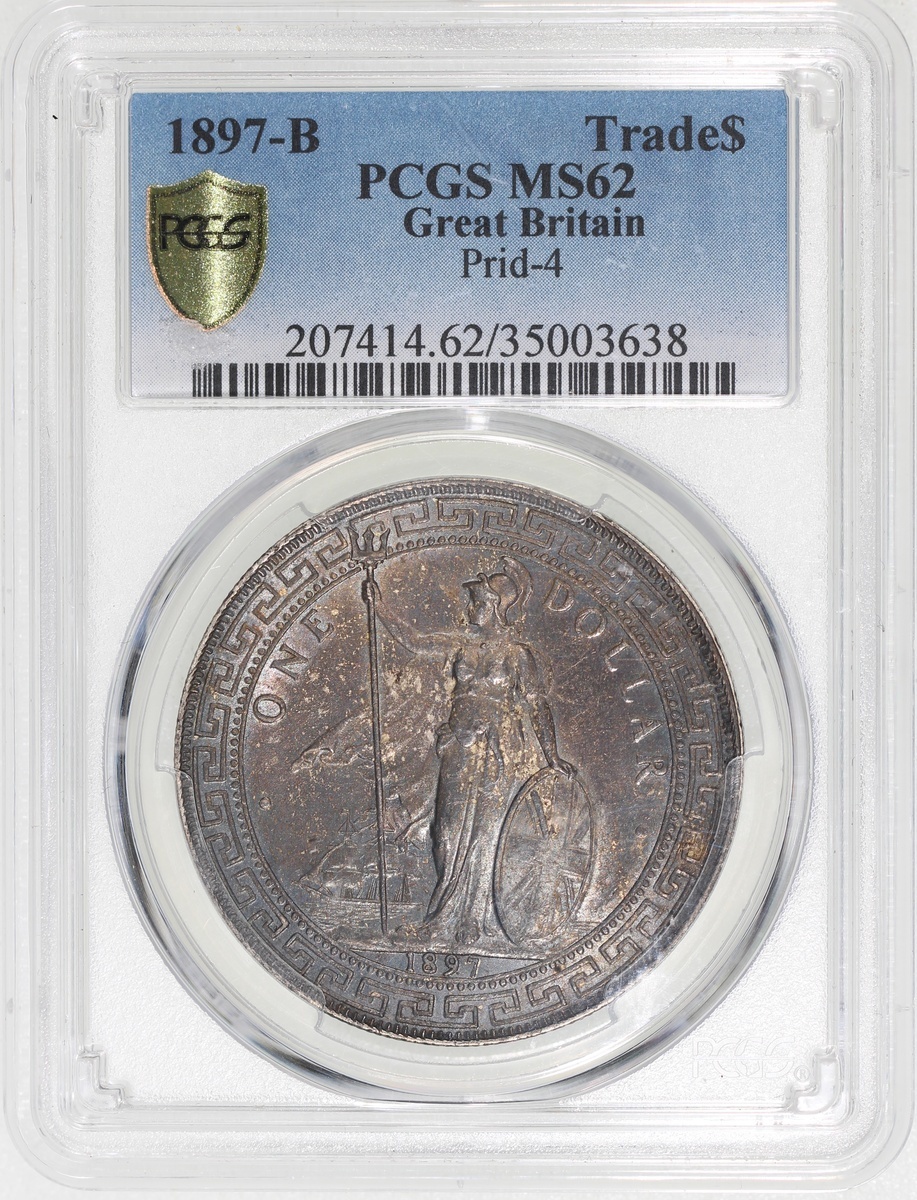 1897-B英國貿易銀元,均勻老舊包漿,PCGS MS62,#35003638