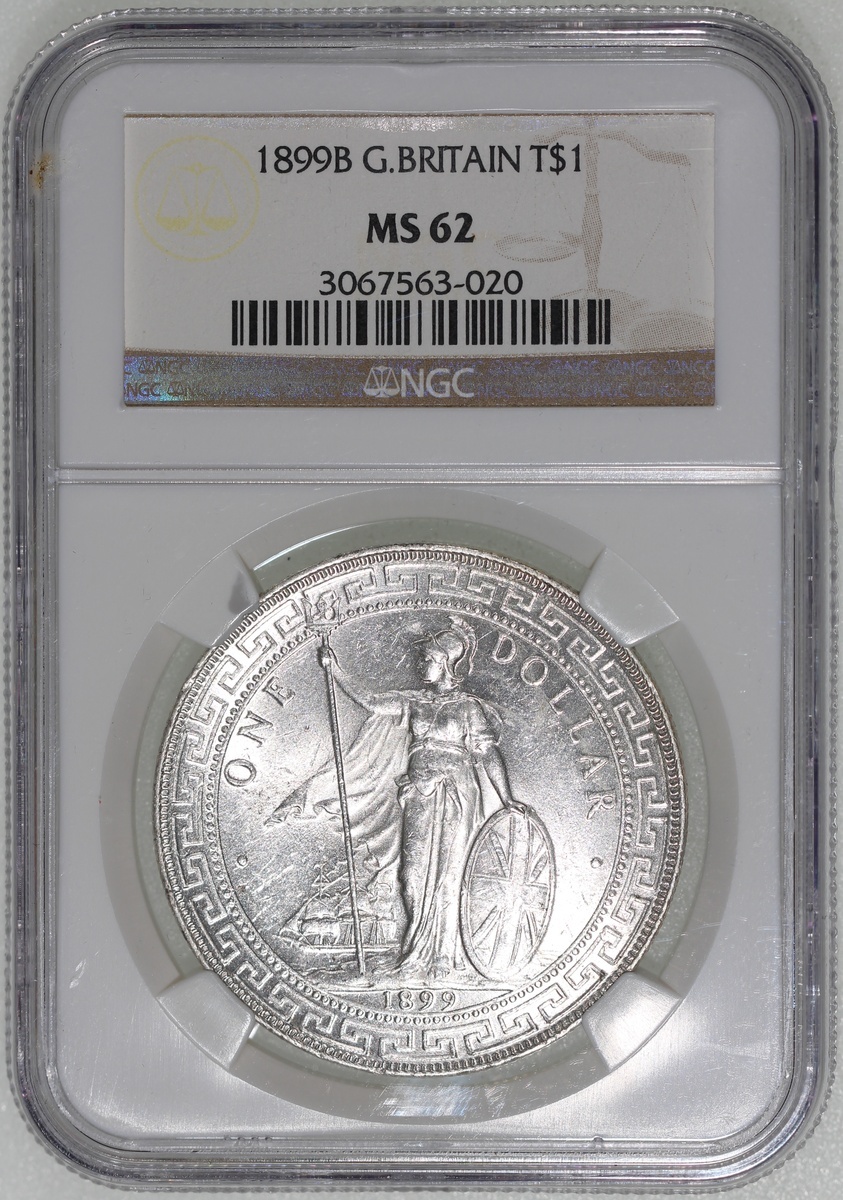 Great Britain,Trade Dollar, silver $1, 1899B, full luster, NGC MS62. Cert.# 3067563-020