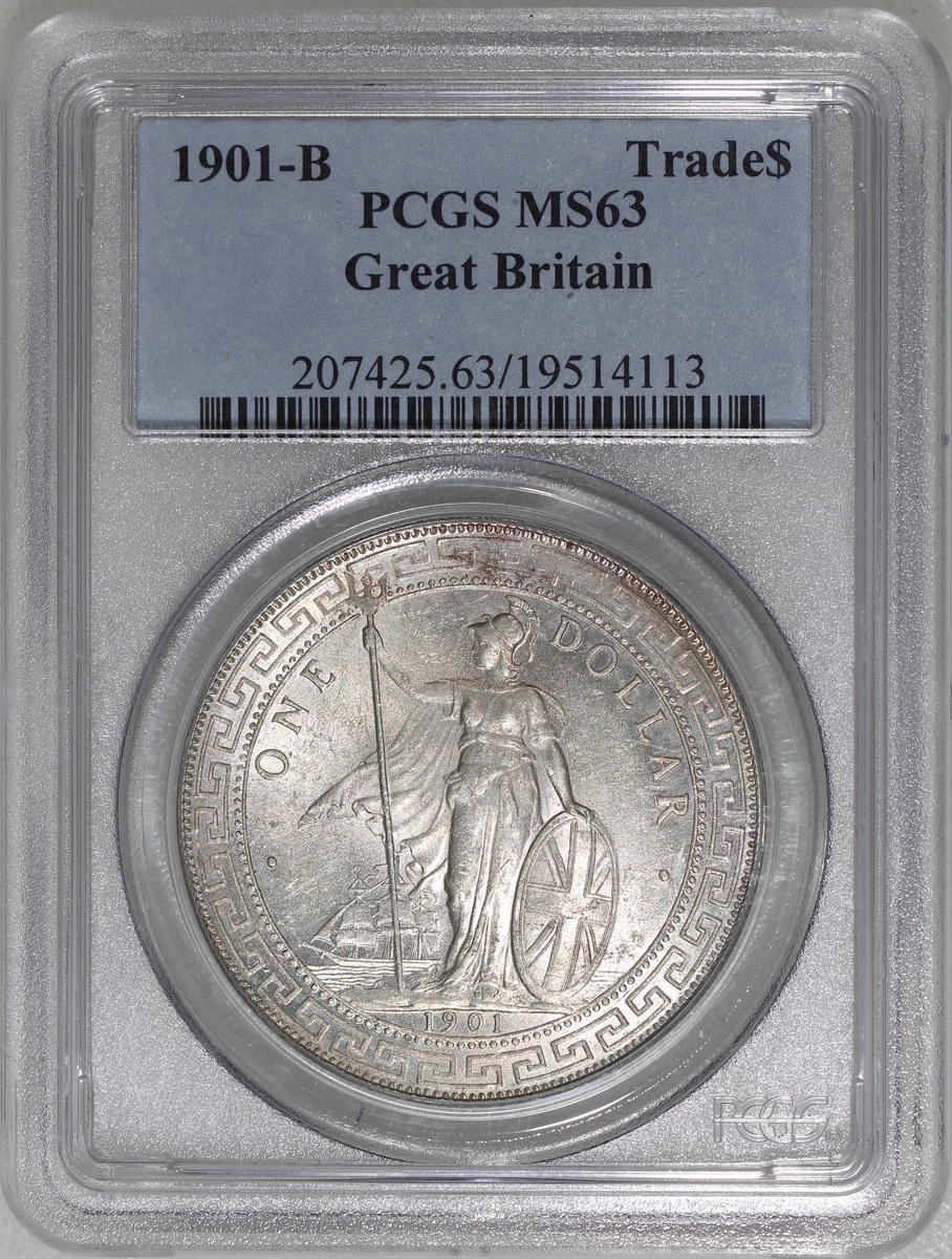 Great Britain, Trade Dollar, silver $1, 1901B, PCGS MS63. Cert.# 19514113
