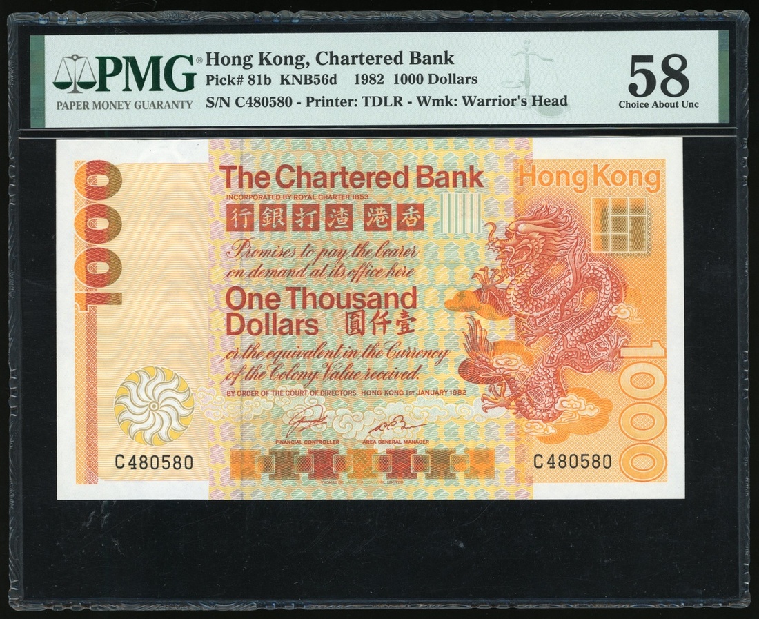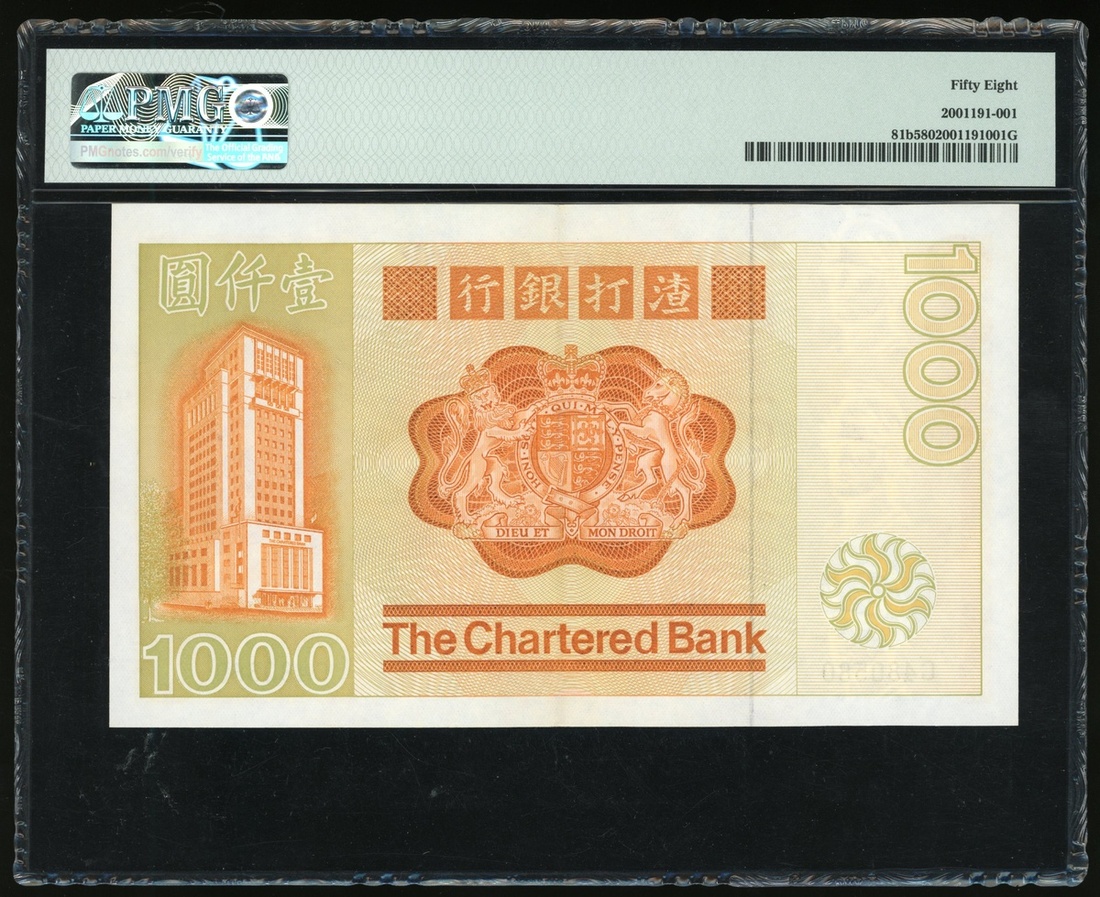 1982年渣打銀行1000元,編號C364721,PMG 58,熱門版別
