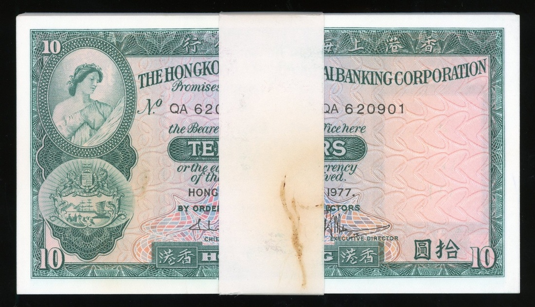 The Hongkong and Shanghai Banking Corporation, a consecutive run of 100x $10, 31.3.1977, serial numbers QA620901-621000, (Pick 182h), uncirculated, with wrapper (100).