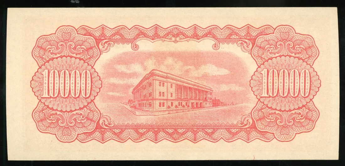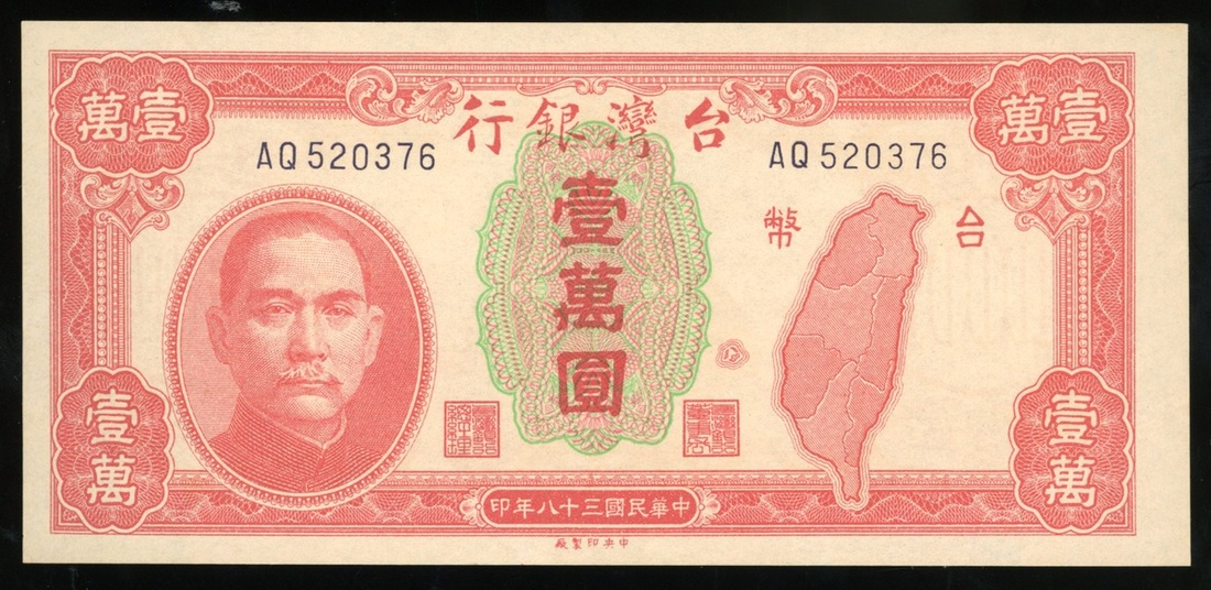 民國三十八年台灣銀行壹萬圓,編號AQ 520376,UNC