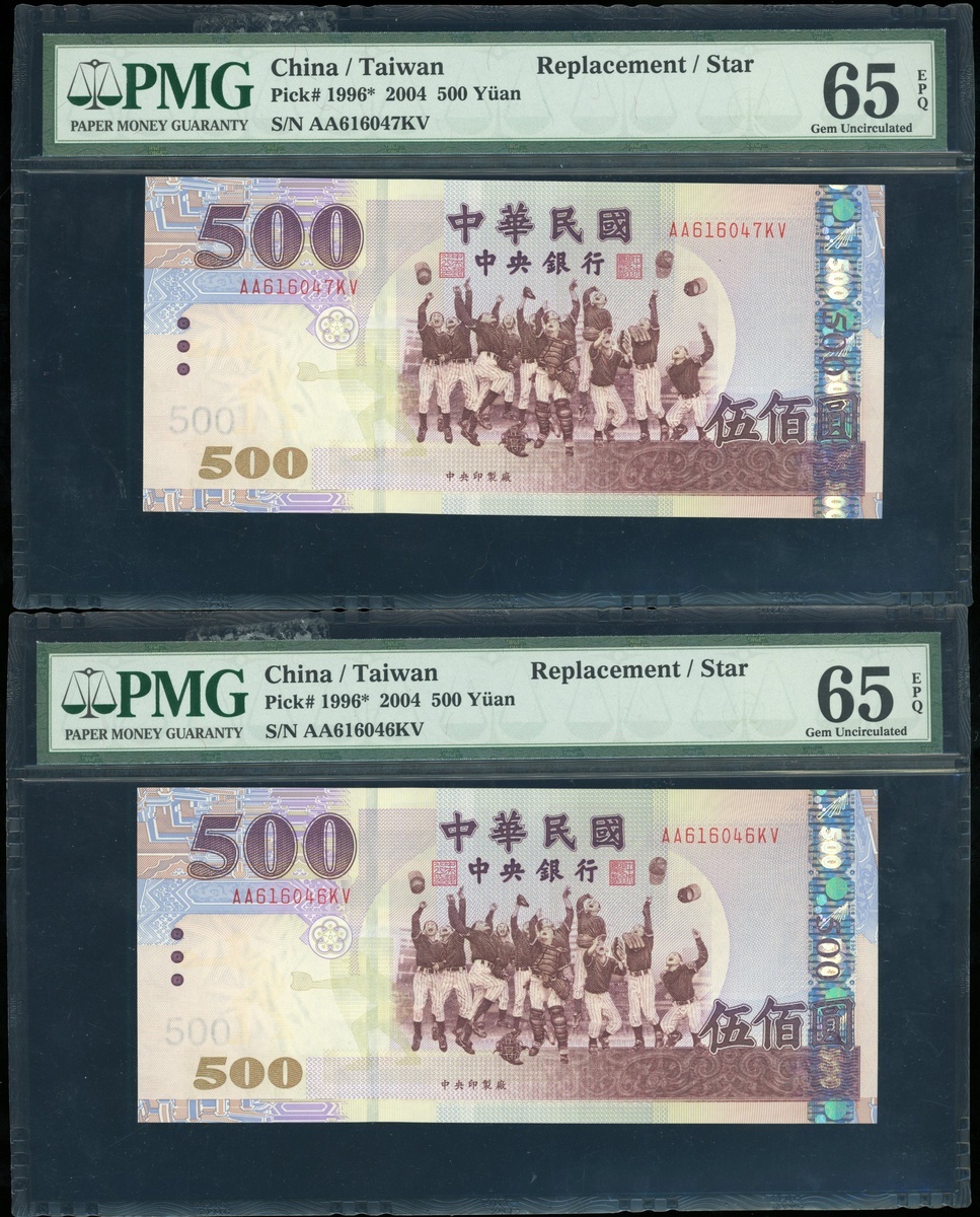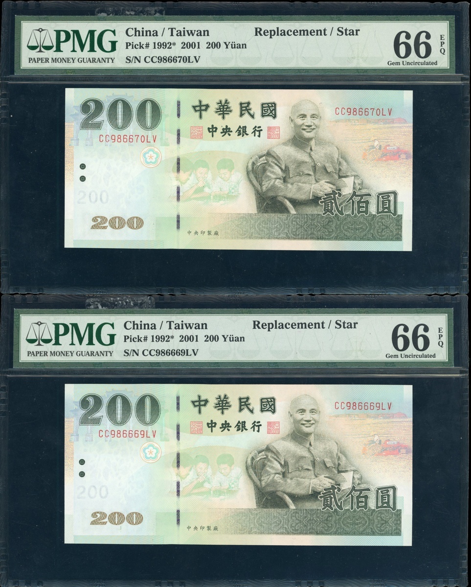 Bank of Taiwan, a group of 4x replacements 200 and 500 yuan, 2001-04, (Pick 1992*, 1996*), PMG 66EPQ, 65EPQ (4)