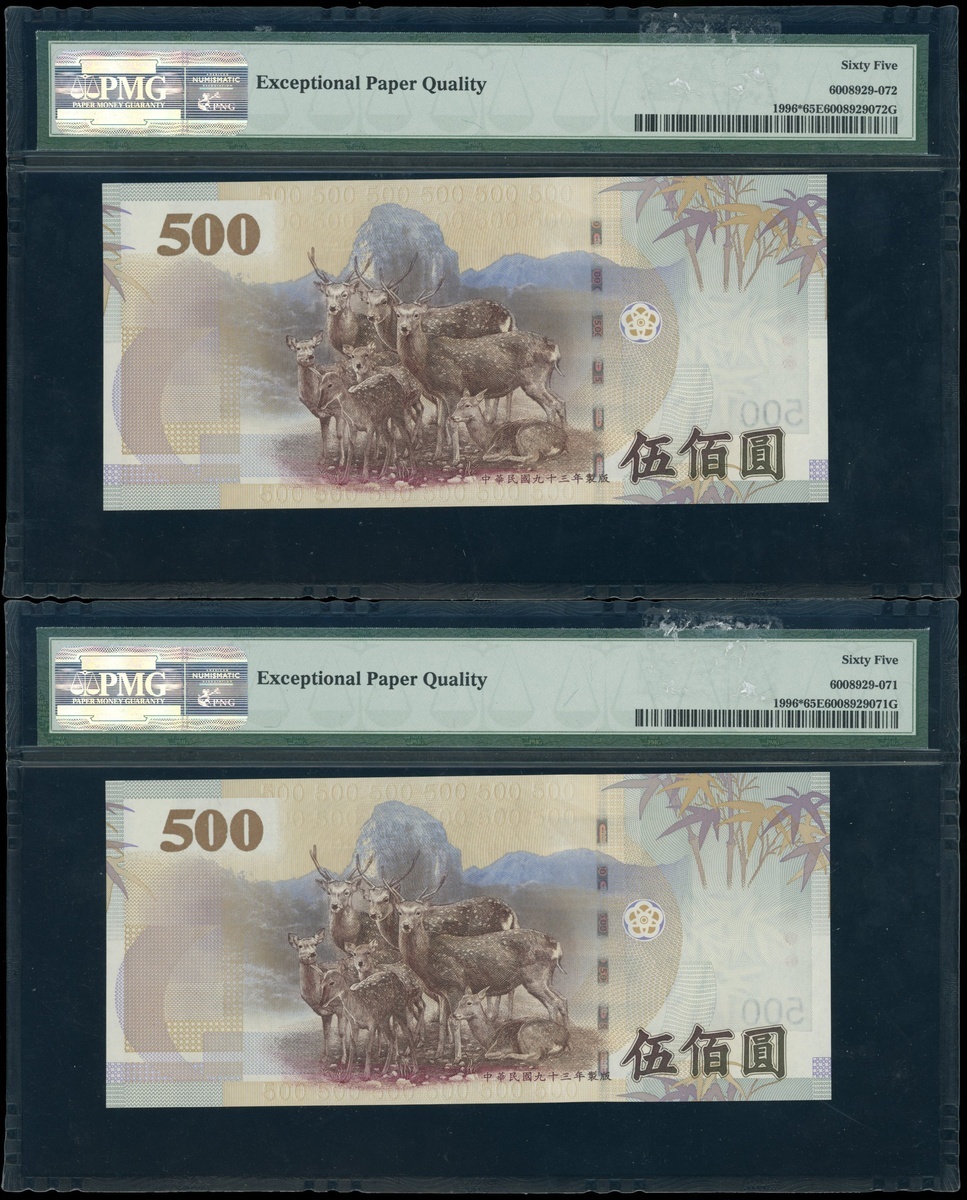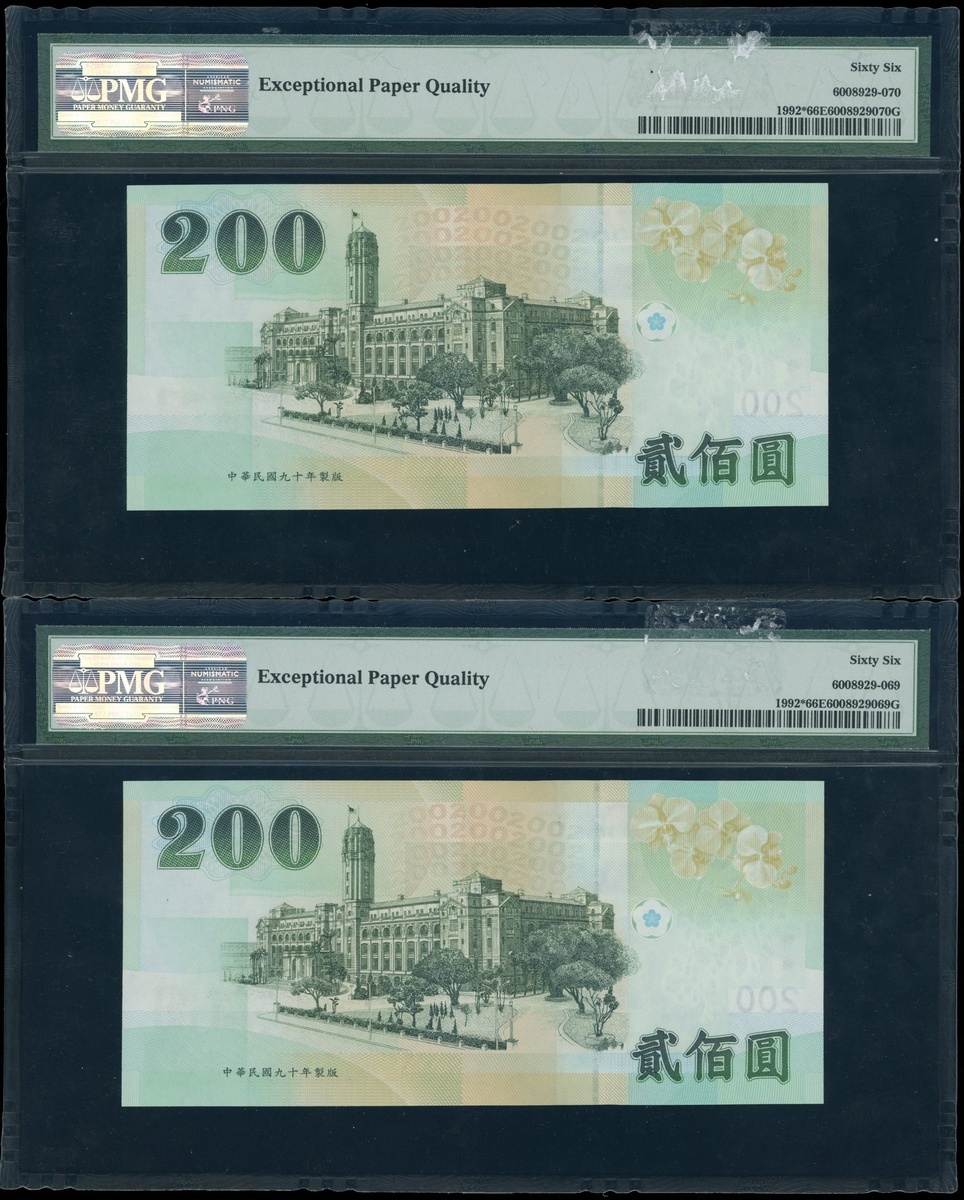 民國九十至九十三年台灣銀行補版貳佰圓及伍佰圓共4枚一組,1枚評PMG 66EPQ,其餘評65EPQ