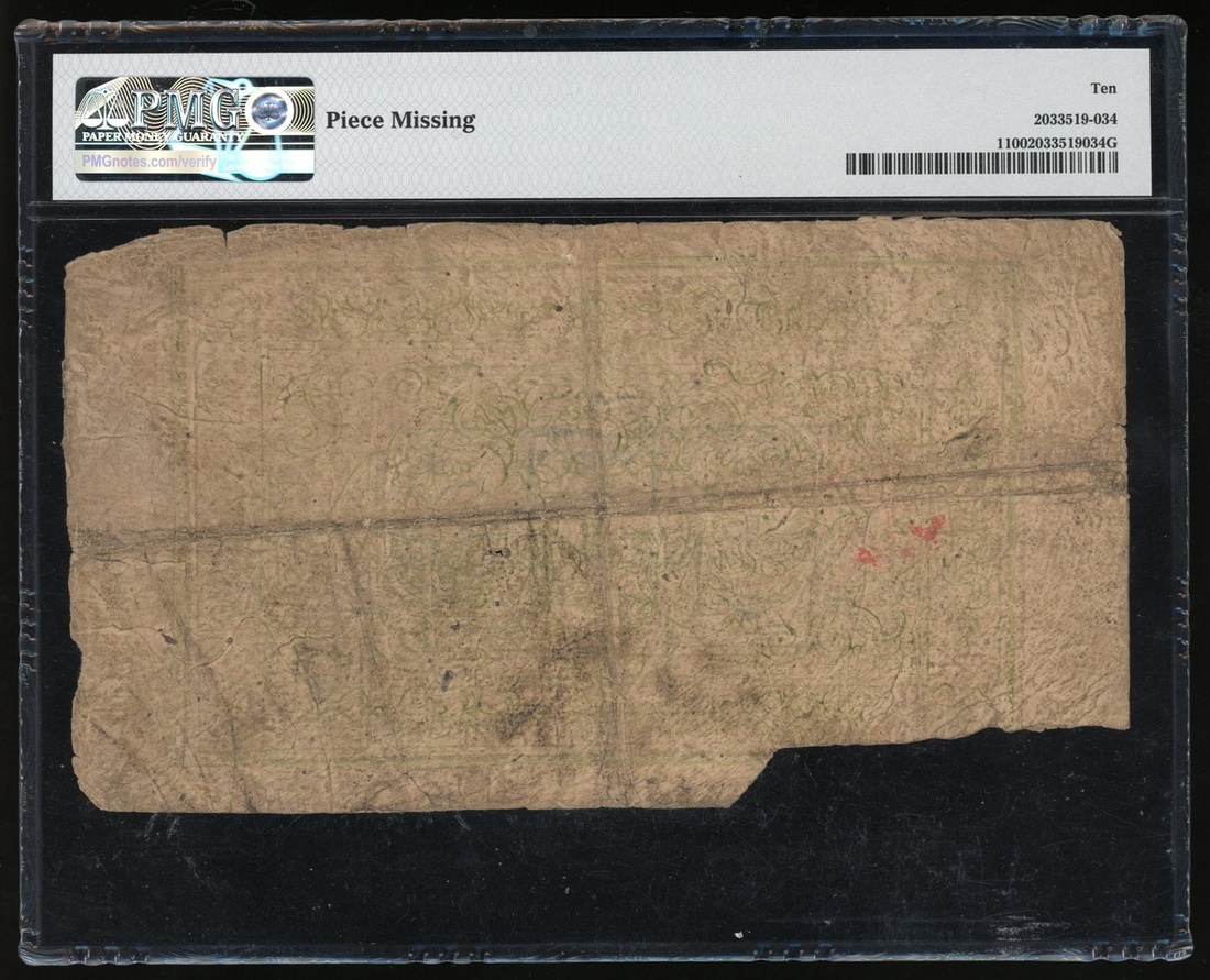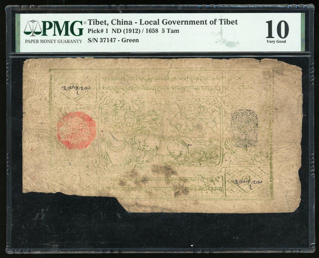 1912年西藏5 tam,編號37147,PMG 10,紙幣有缺