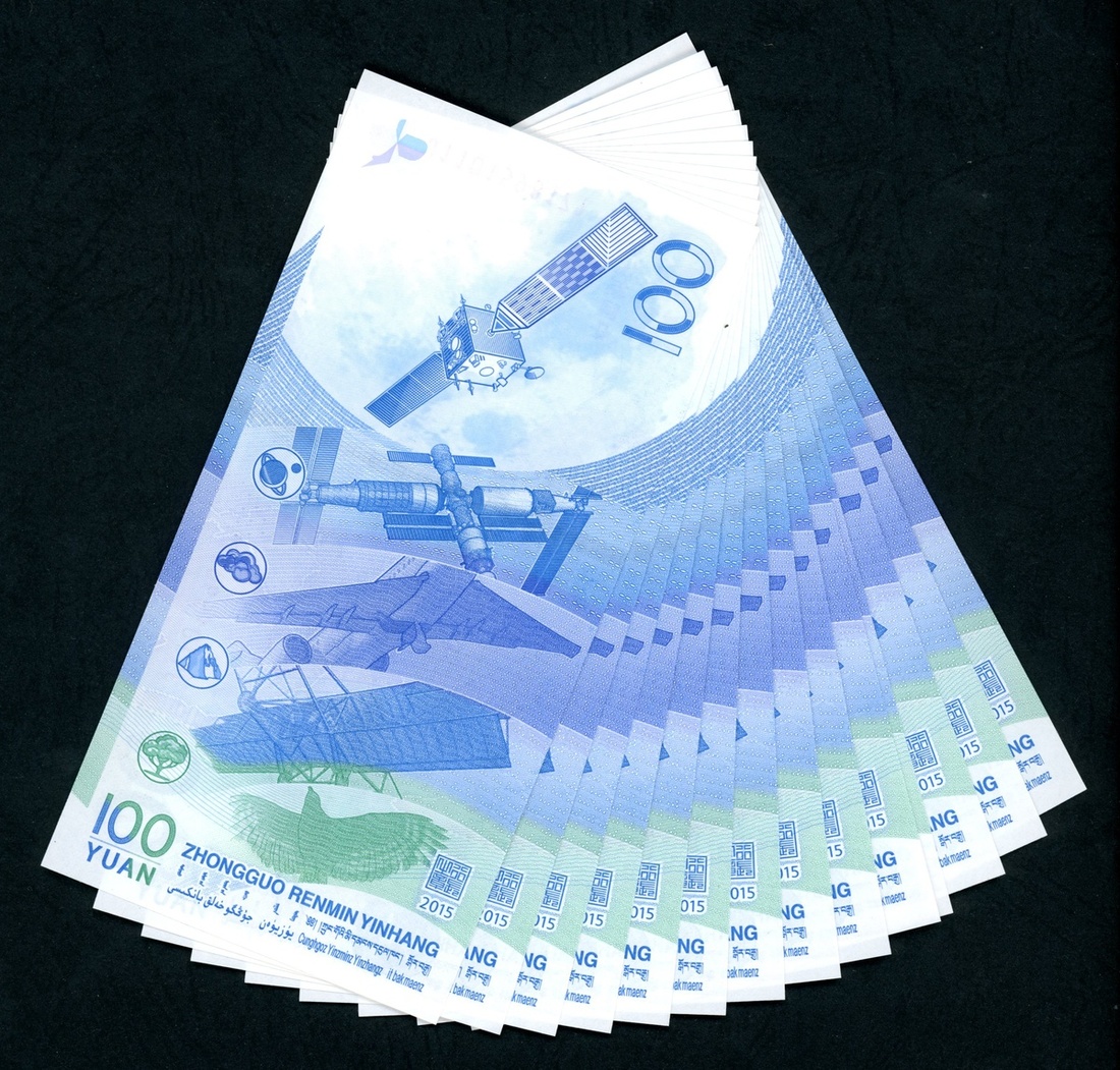 People's Bank of China, commemorative 100 yuan (14), 2015, 'Aerospace Science and Technology', (Pick 910), uncirculated (14)