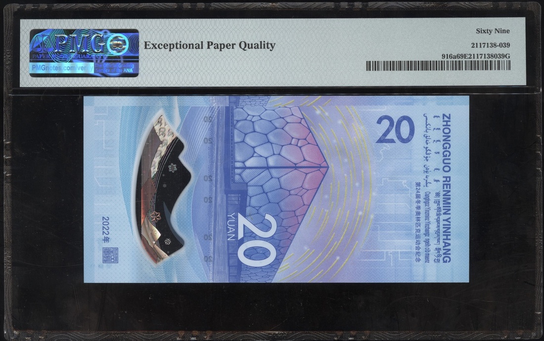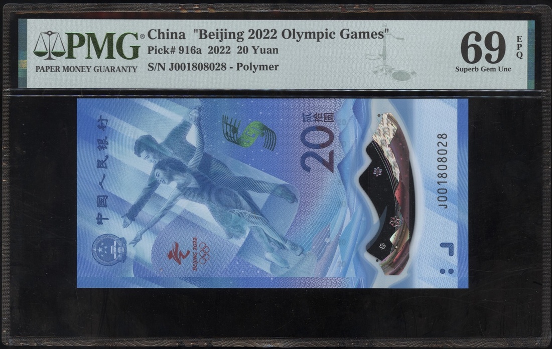 2022年中國人民銀行冬季奧運紀念20元,編號J001808028,PMG 69EPQ