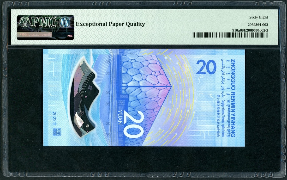 2022年中國人民銀行冬季奧運紀念20元,趣味號J108018180,PMG 68EPQ