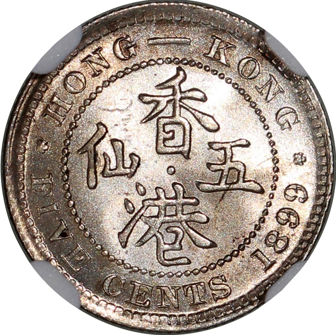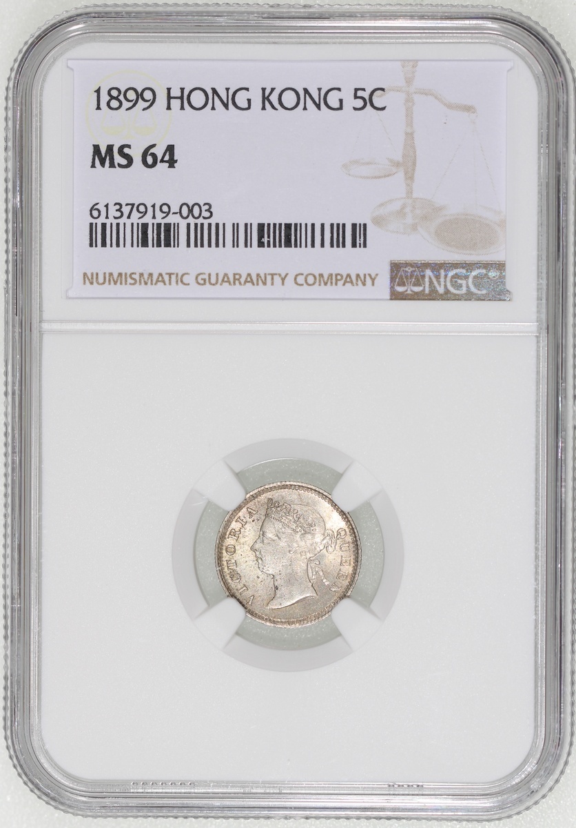Hong Kong, silver 5 cents, 1899, NGC MS64, #6137919-003.
