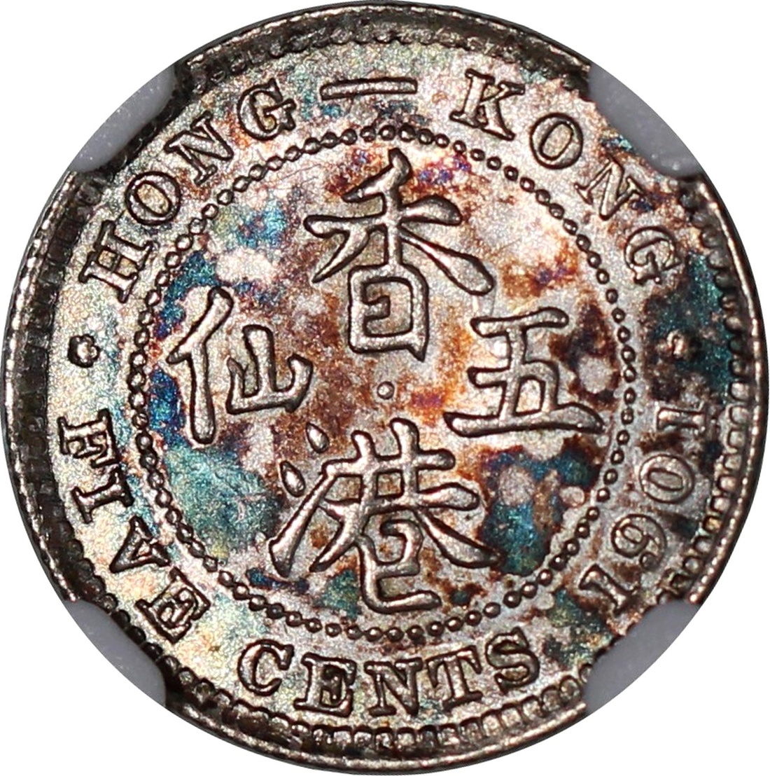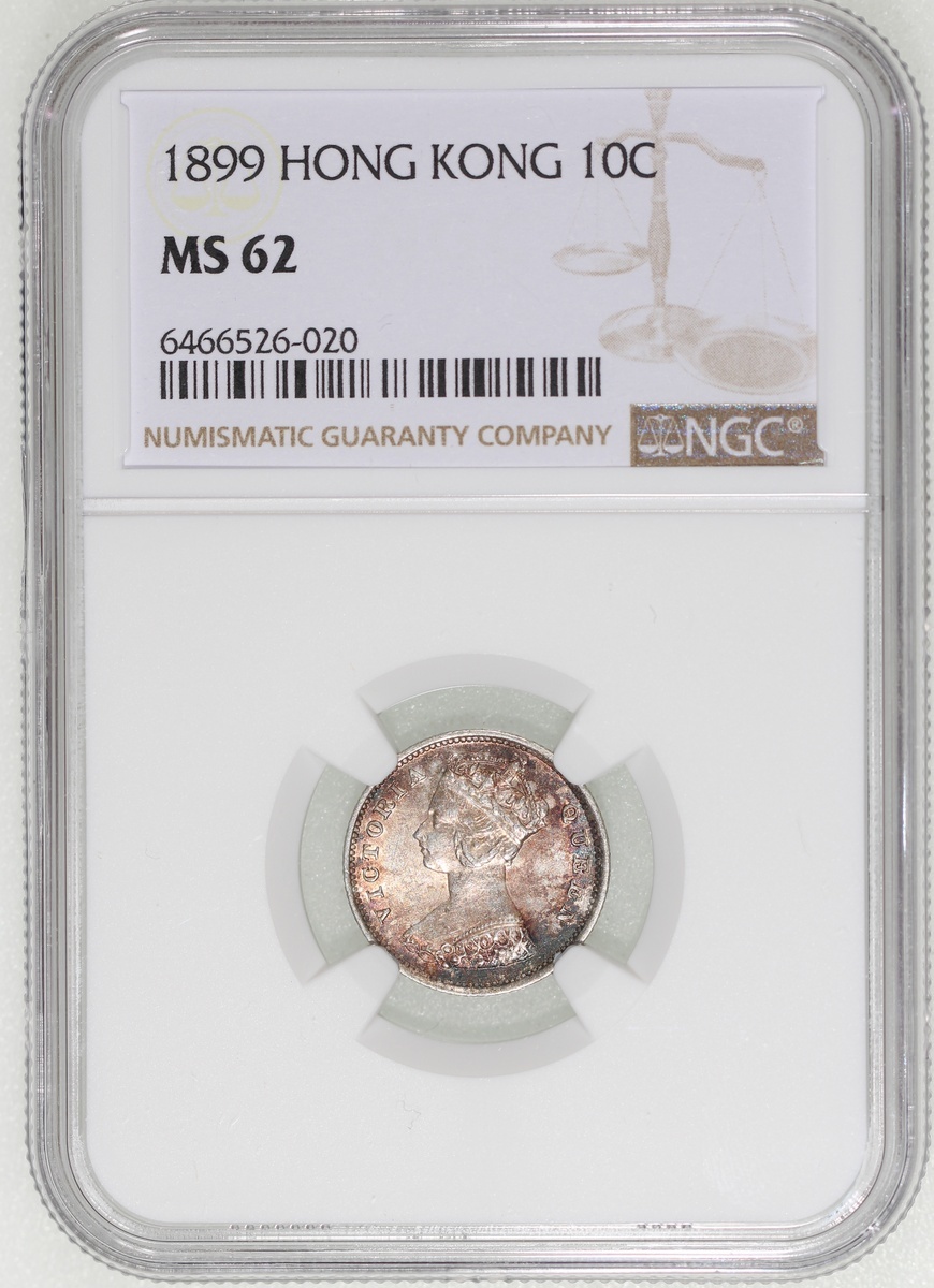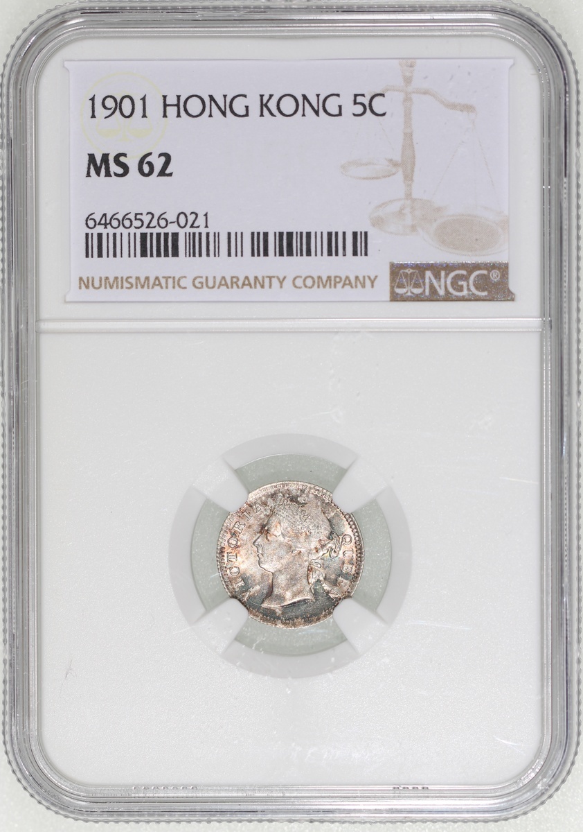 Hong Kong, a pair of 5 cents, 1901 and 10 cents, 1899, both graded NGC MS62, #6466526-020 and #6466526-021 (2).