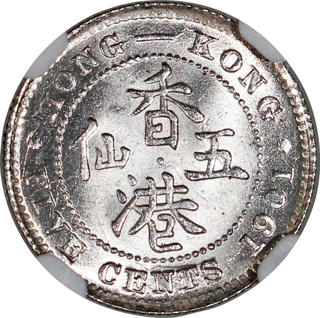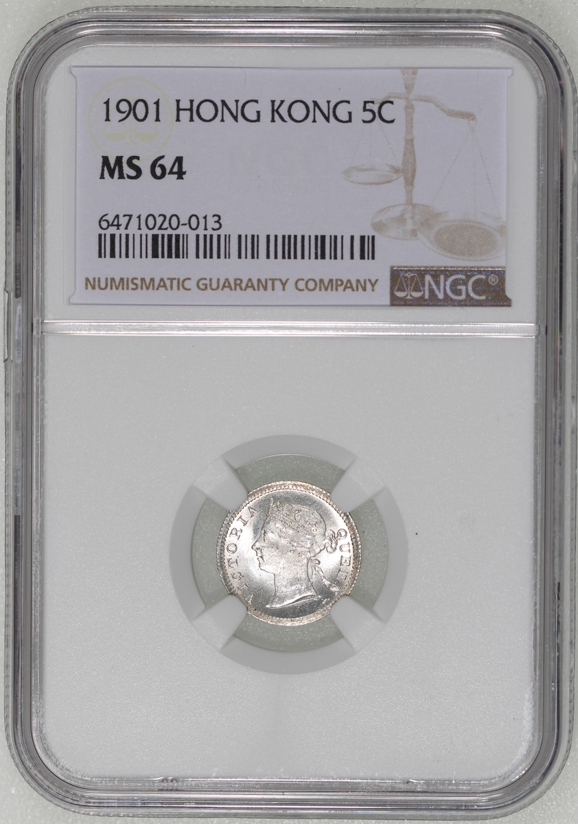 Hong Kong, silver 5 cents, 1901, NGC MS64, #6471020-013.