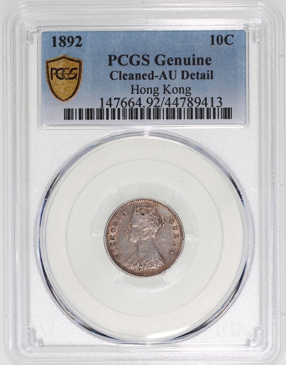 Hong Kong, 10 cents, 1892, PCGS Genuine (Cleaned-AU Detail) #44789413