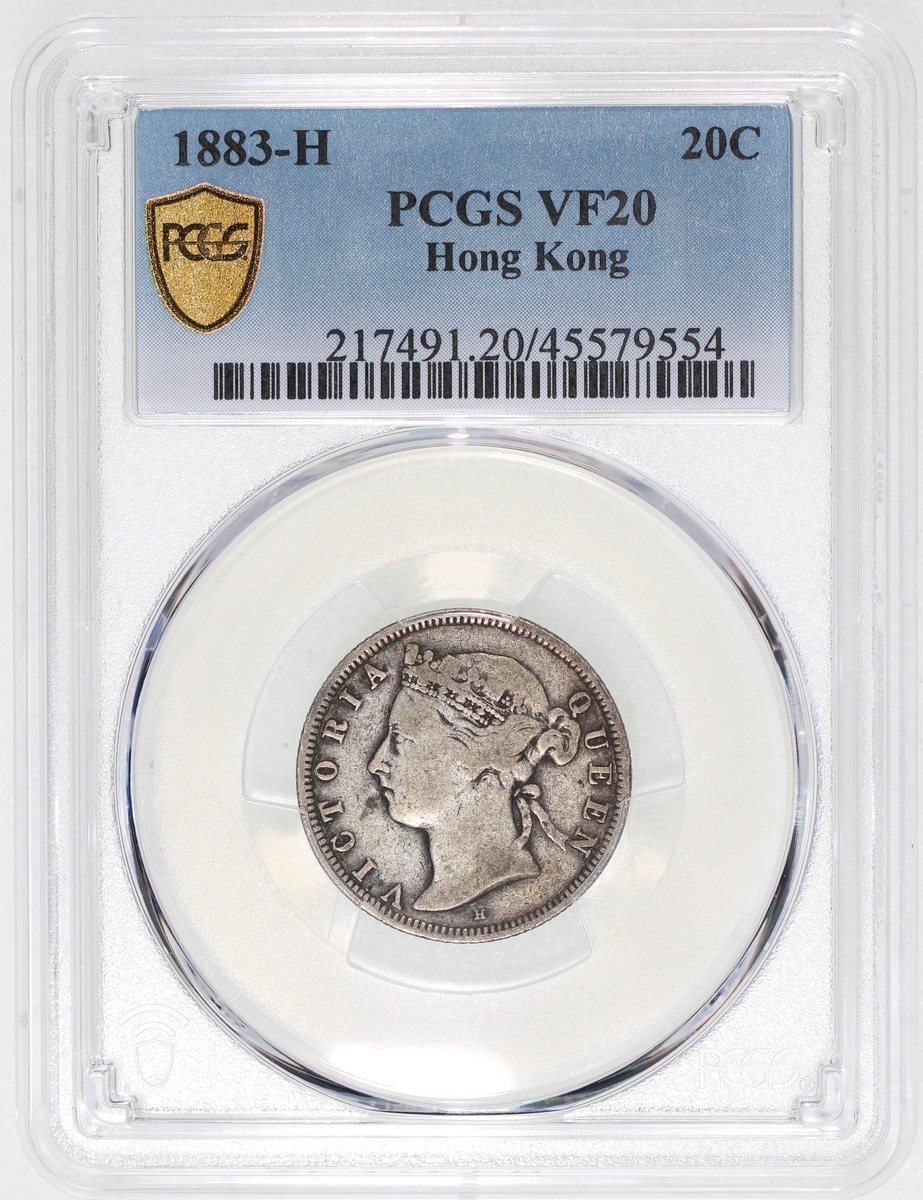 Hong Kong, silver 20 cents, 1883-H, Heaton's mint, PCGS VF20, cert. #45579554