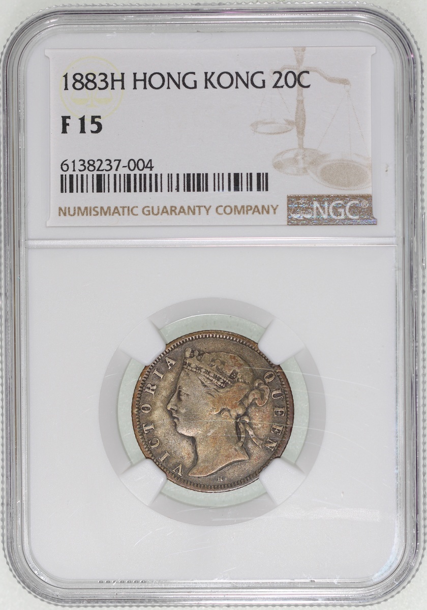Hong Kong, 20 cents, 1883H, NGC F15, #6138237-004.