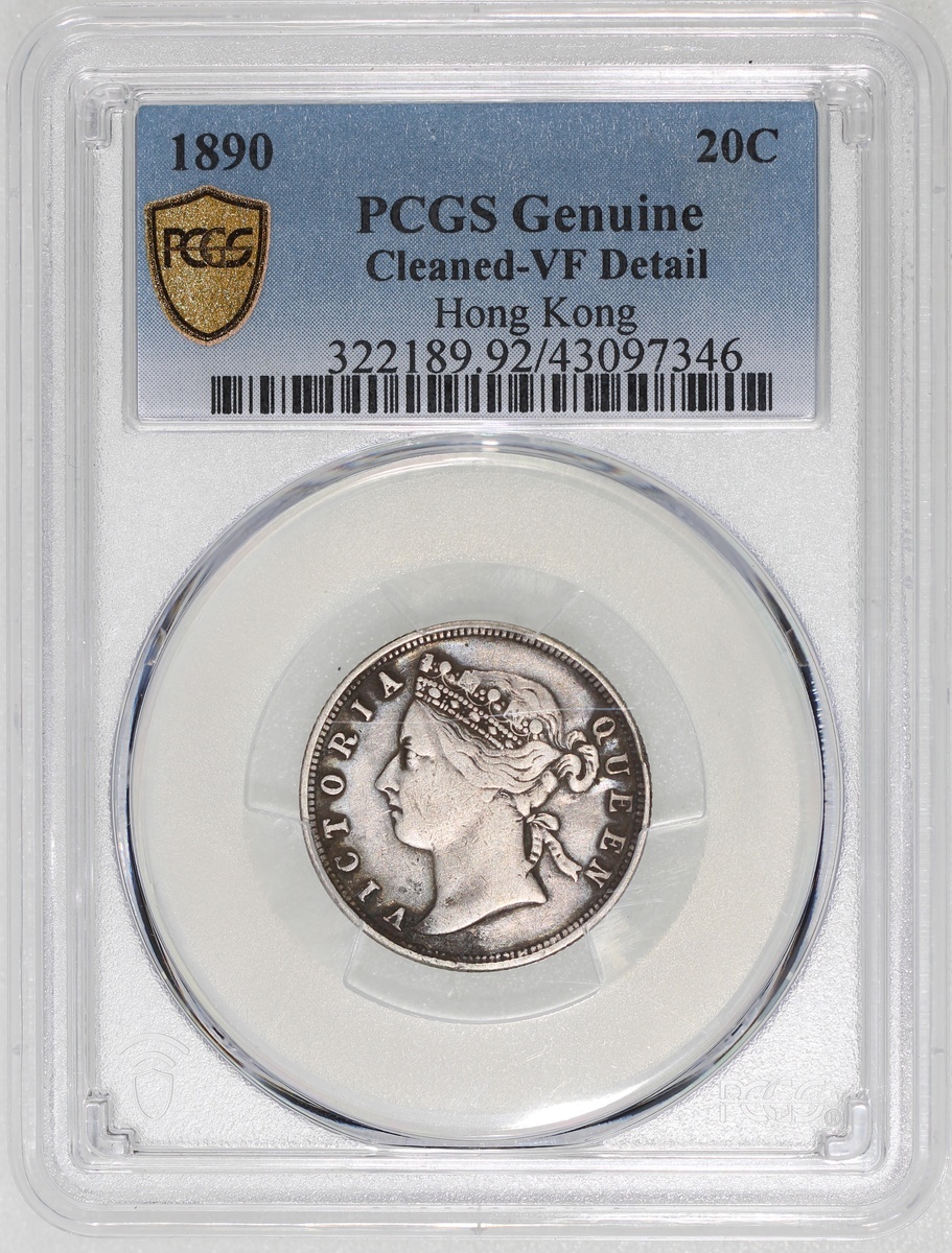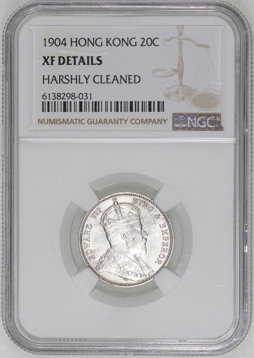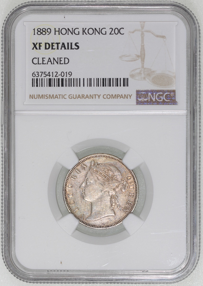 1889,1890及1904年香港2毫3枚一組,分別評NGC XF Details有清洗,PCGS VF Detail有清洗,及NGC XF Details有嚴重清洗,#6375412-019,43097346,6138298-031,