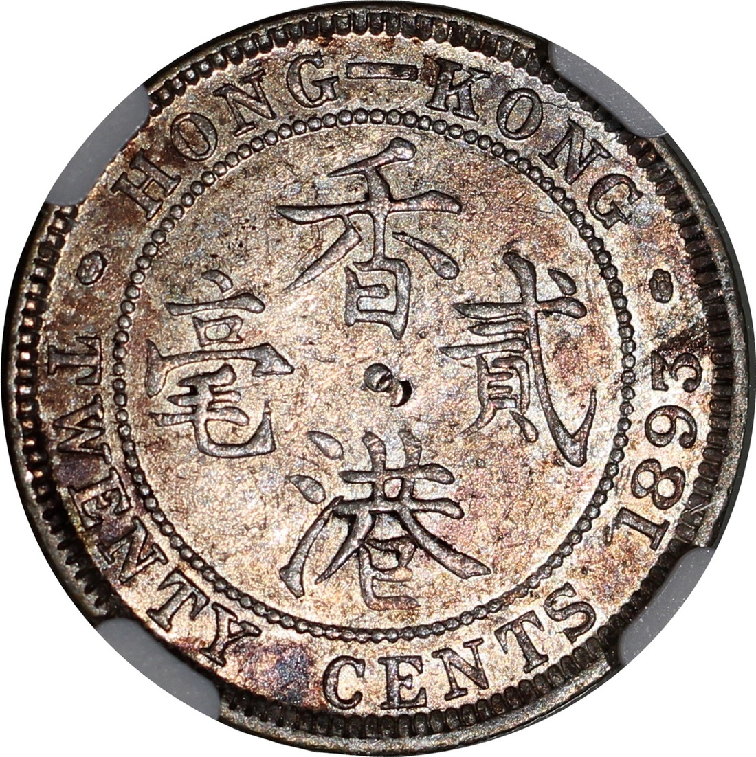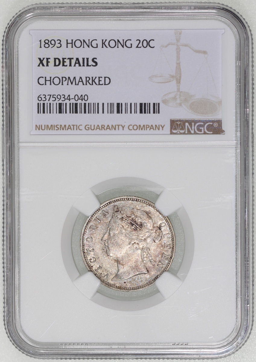 Hong Kong, silver 20 cents, 1893, NGC XF Details, chopmarked. Cert.# 6375934-040