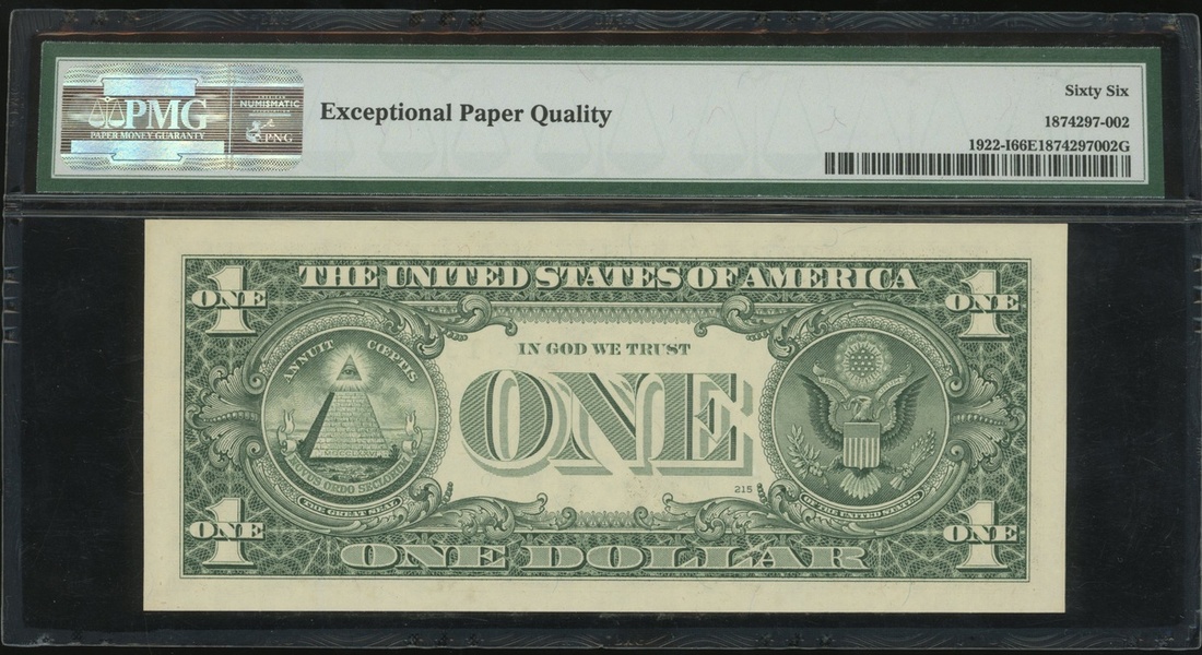 1995年美國壹圓,編號I3233333D,PMG66EPQ
