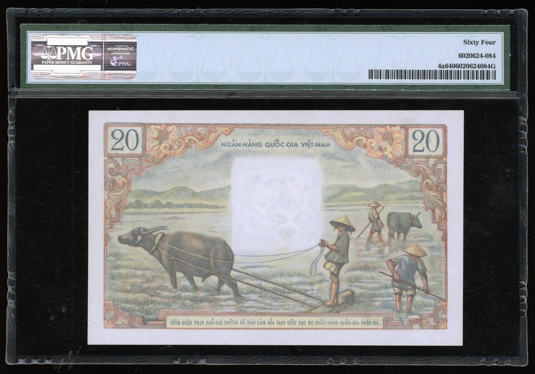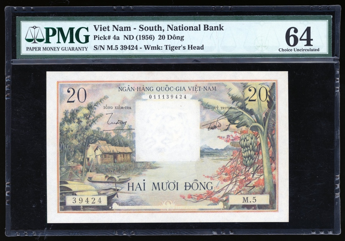 Viet Nam-South, 20 dong, ND(1956), serial number M.5 39424, (Pick 4a), PMG 64.