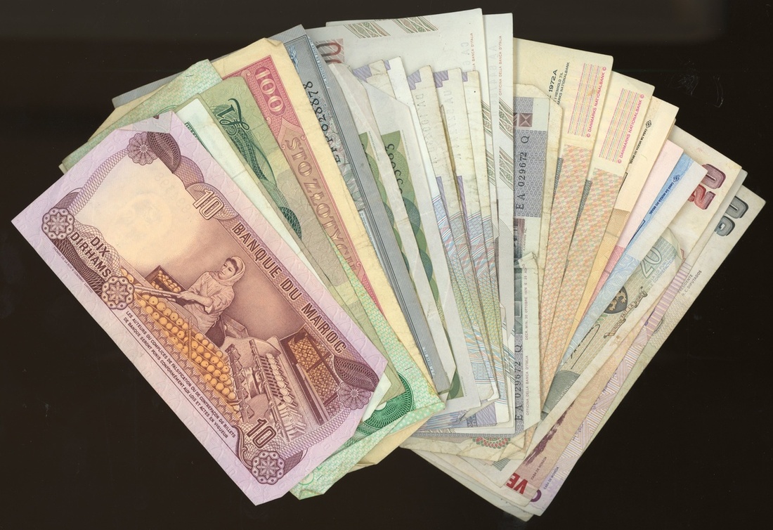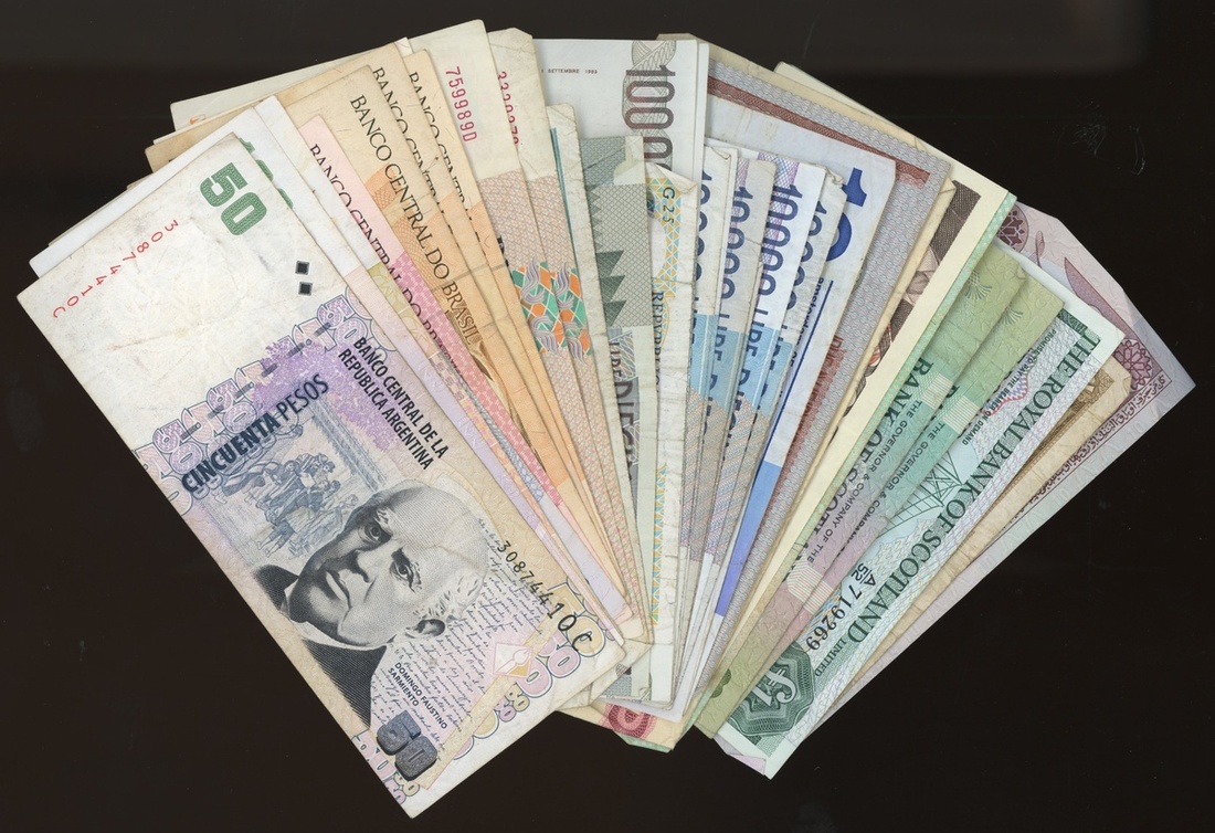 World Banknotes, a group of 37x notes, including Argentina (3), Belgium (2), Brazil (6), Denmark (2), Greece (1), Italy (10), Morocco (1), Netherlands (4), Poland (2), Philippines (1), Scotland (3), Yugoslavia (2),
