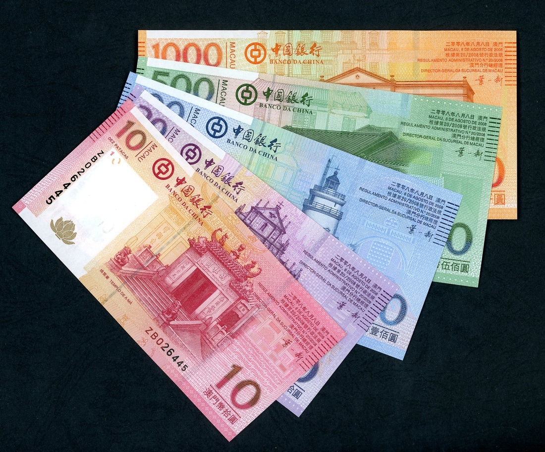 Banco da China, Macau, a partial set of 2008 replacement, including 10, 20, 100, 500 and 1000 patacas, (Pick 108*, 109*, 111*, 112*, 113*), uncirculated (5)