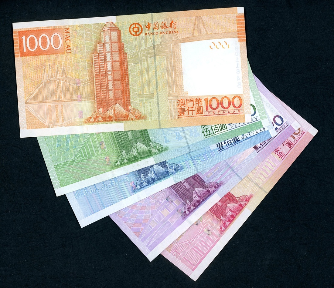 2005年澳門中國銀行補版10、20、100、500及1000元一組5枚,UNC品相