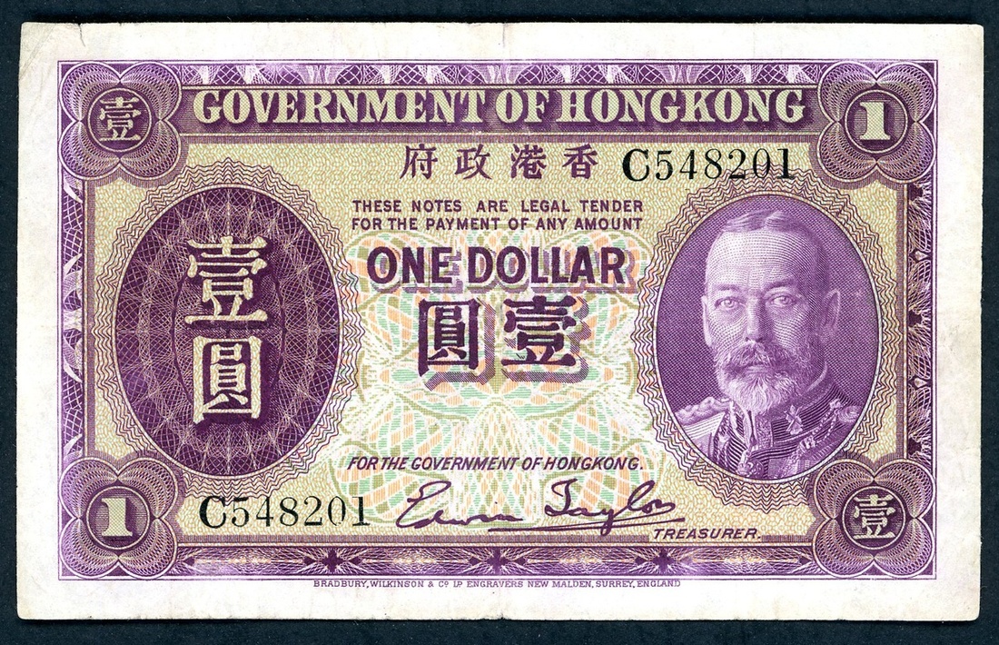 Government of HongKong, $1, ND (1935), serial number C548201, (Pick 311), pressed fine