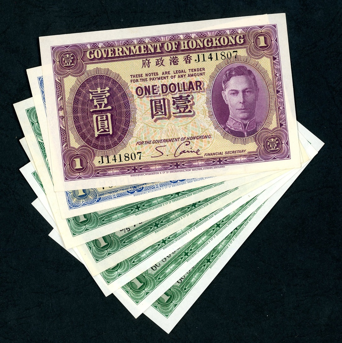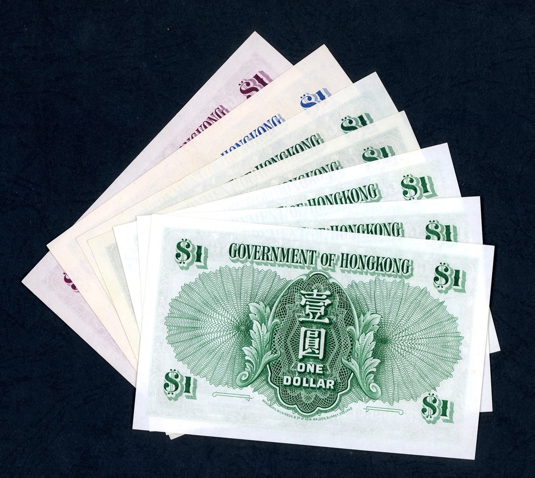 HongKong Government, $1 (7), 1939, 1940, 1949, 1952, 1959, (Pick 312, 316, 324, 324A), balance uncirculated (7)