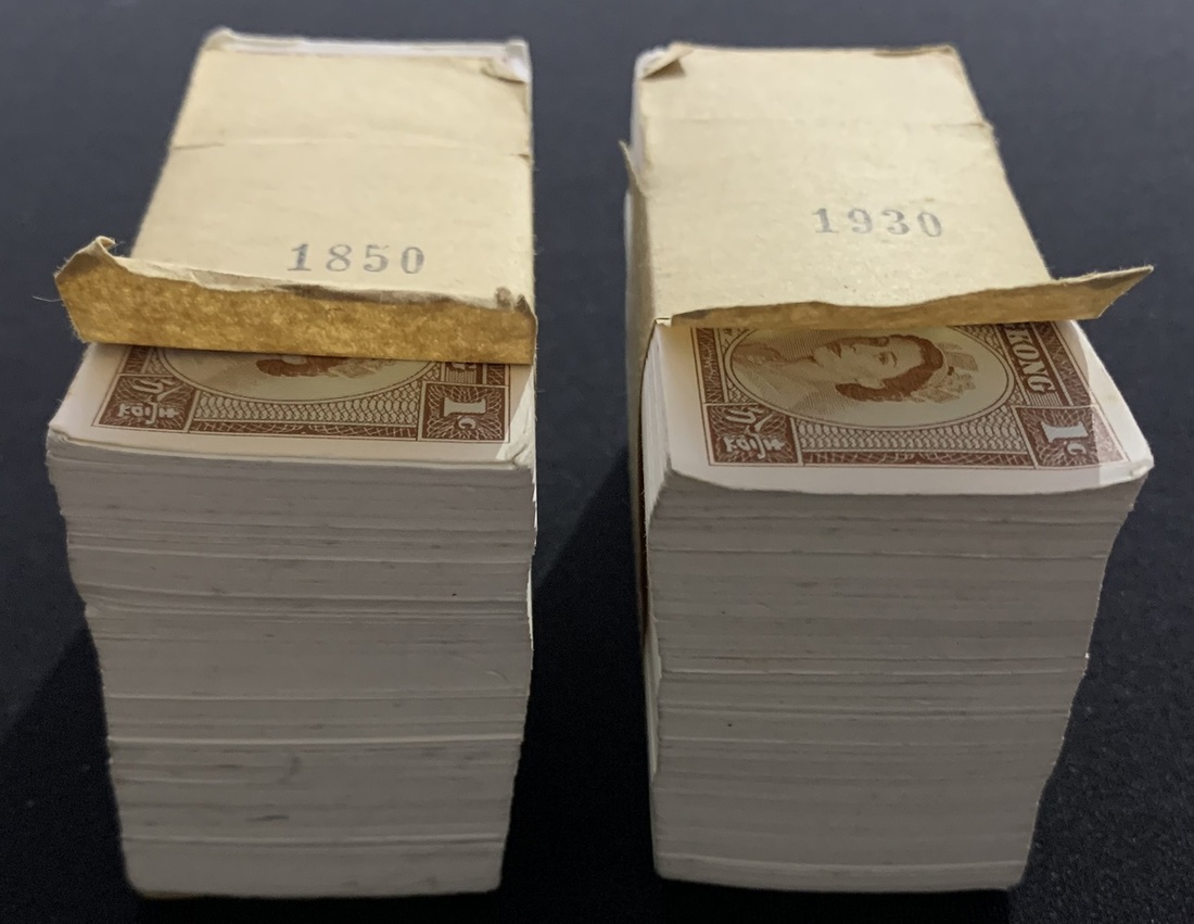 1952年香港政府1仙一組約1000枚,郭伯偉爵士簽名,當中200枚還沒開封,其他有輕微泛黃及碰痕