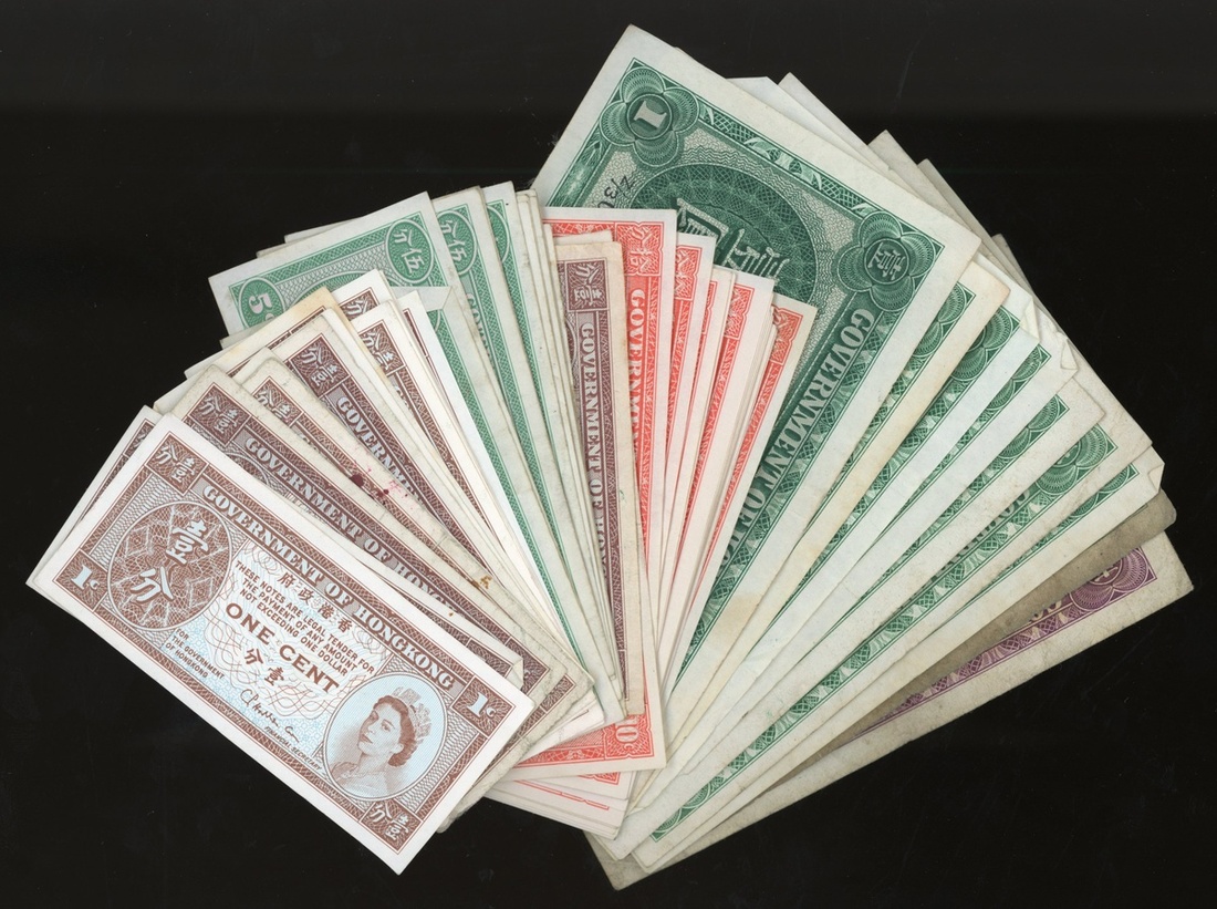 Government of Hong Kong, a group of including George VI $1 (2), ND (1939), 1949, 1 cent, Queen Elizabeth II 1 cent (13), 5 cents (11), 10 cents (14), $1 (8),